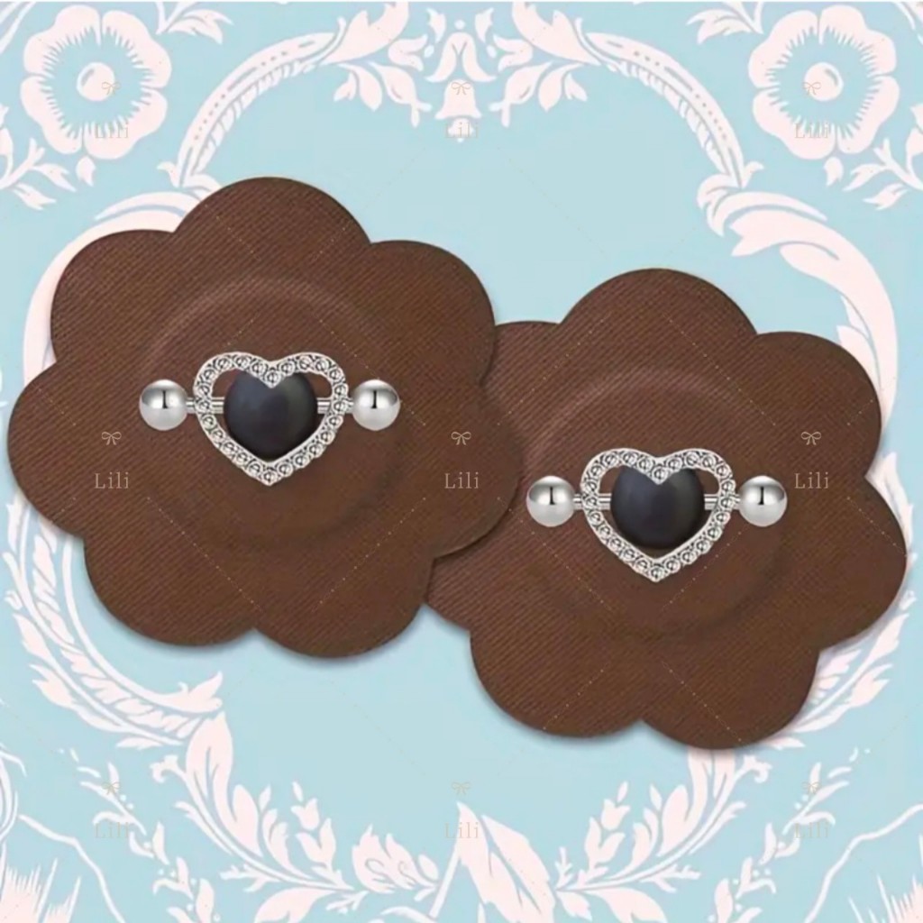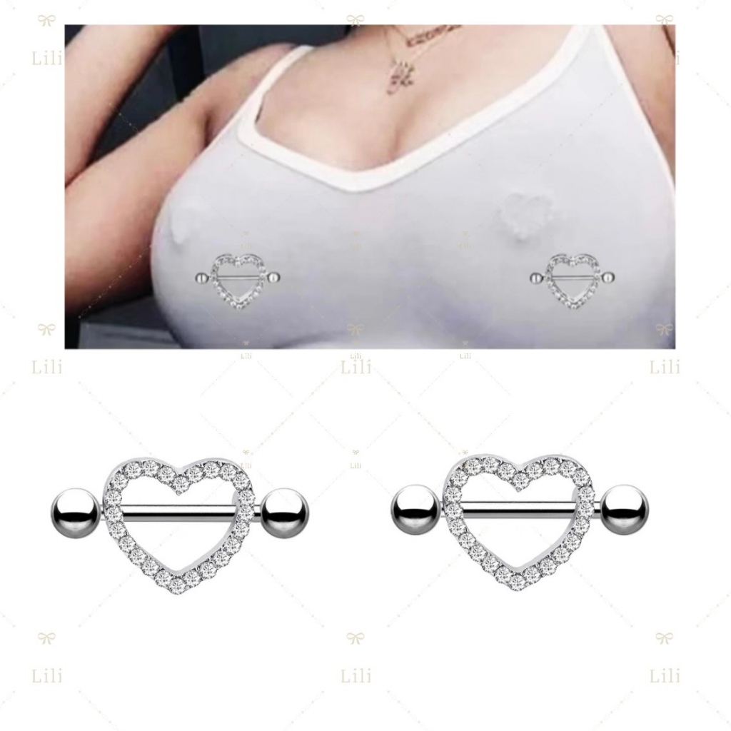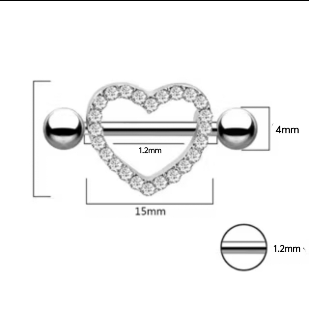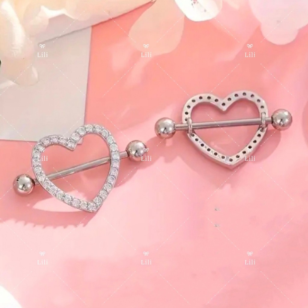 Kit 12 uni Piercing Mamilo Modelos Coração Cravejado com strass