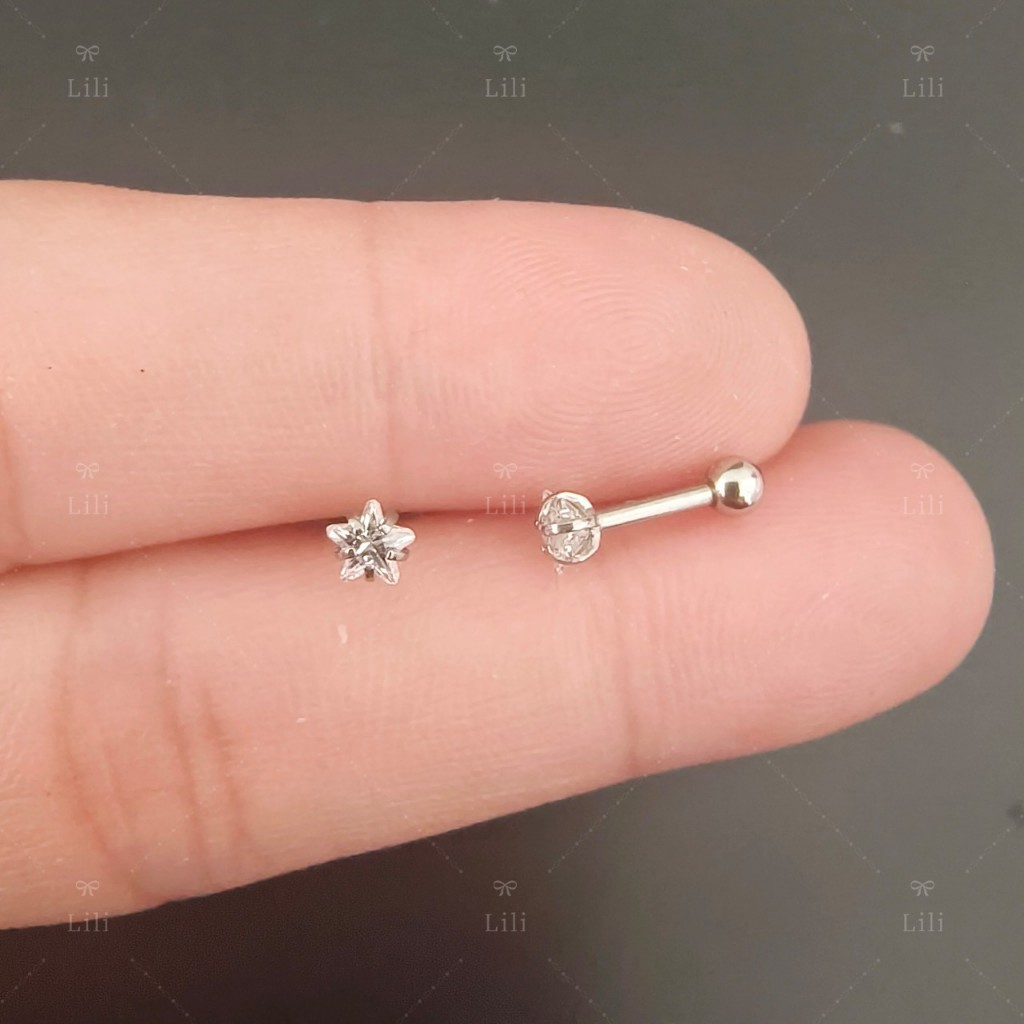 Kit 12 Piercing Estrela ponto de luz com pedra Zircônia em aço inox para Tragus helix Cartilagem