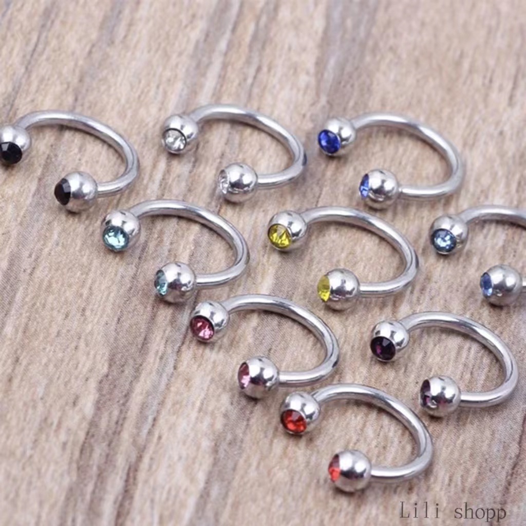 kit 12 Piercing Ferradura para Orelha, Boca e Septo em Aço Cirúrgico Com Strass
