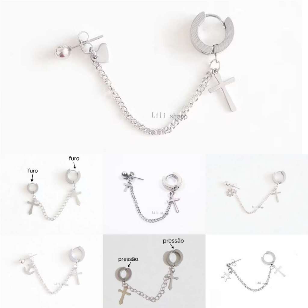 1Pçs Brinco De Argola com Cruz e Correte varias modelo Aço inox Masculino Feminino /moda