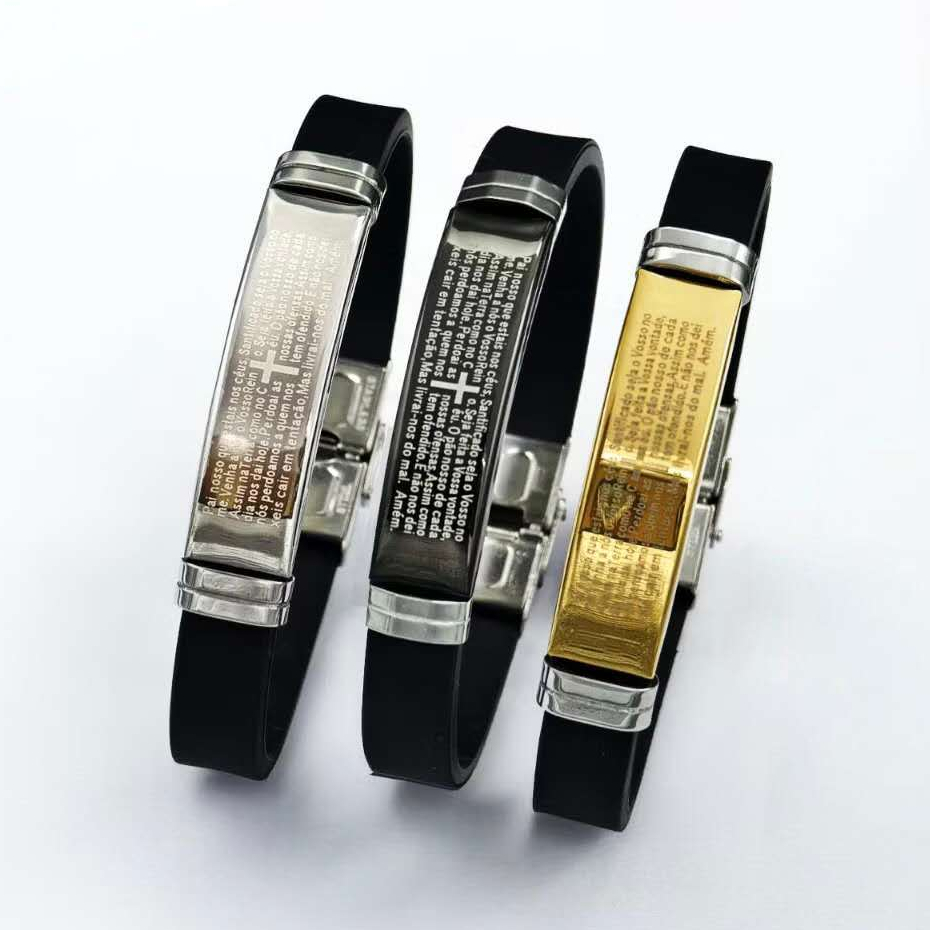 Pulseira Masculina Ajustavel Pai nosso Borracha resistente Prata/ Dourado