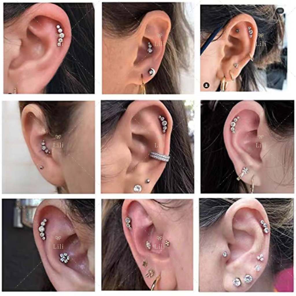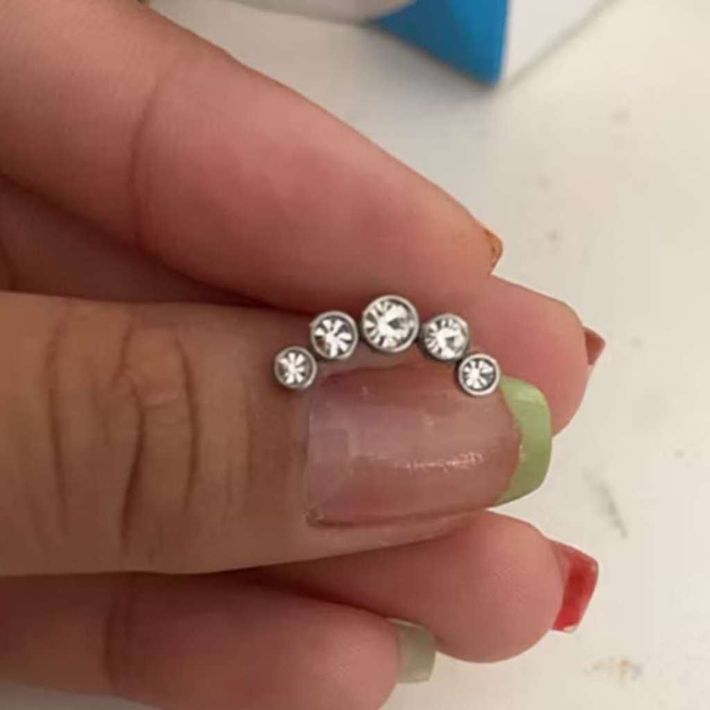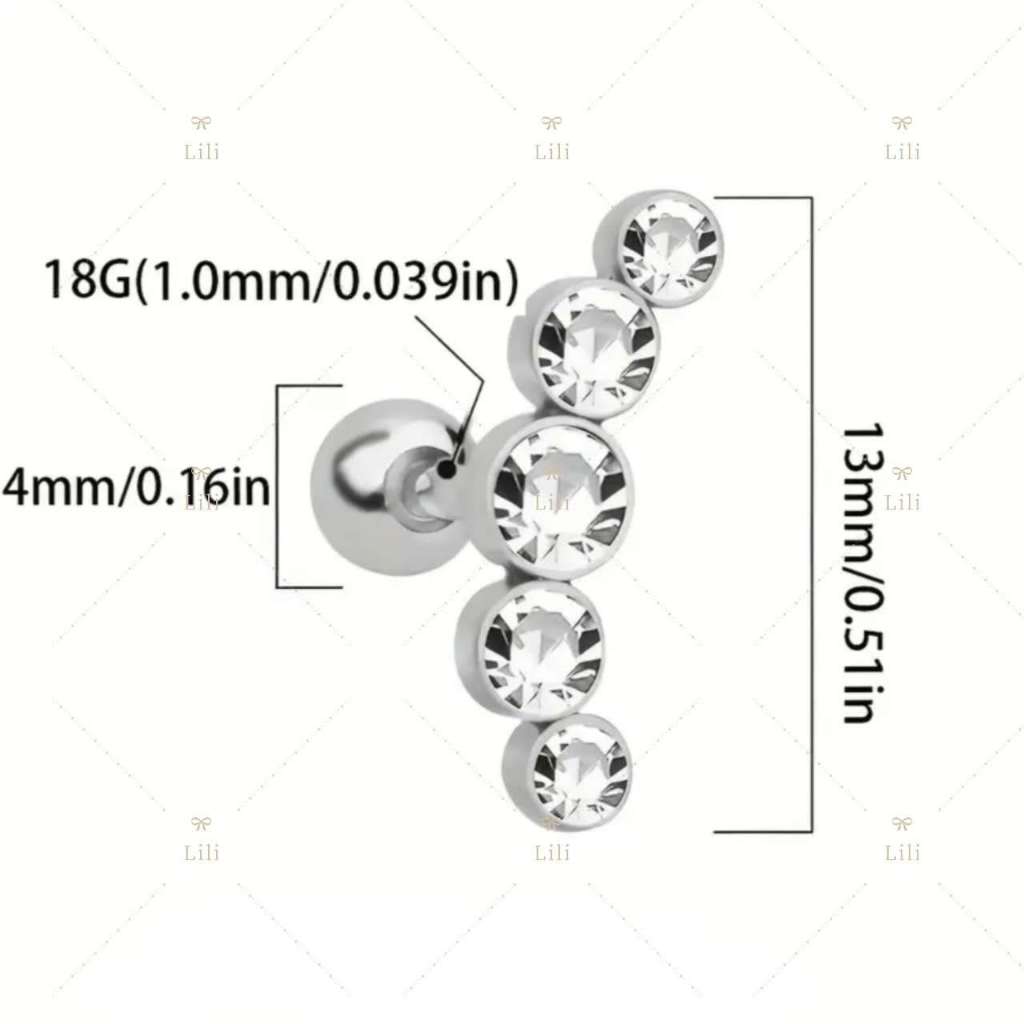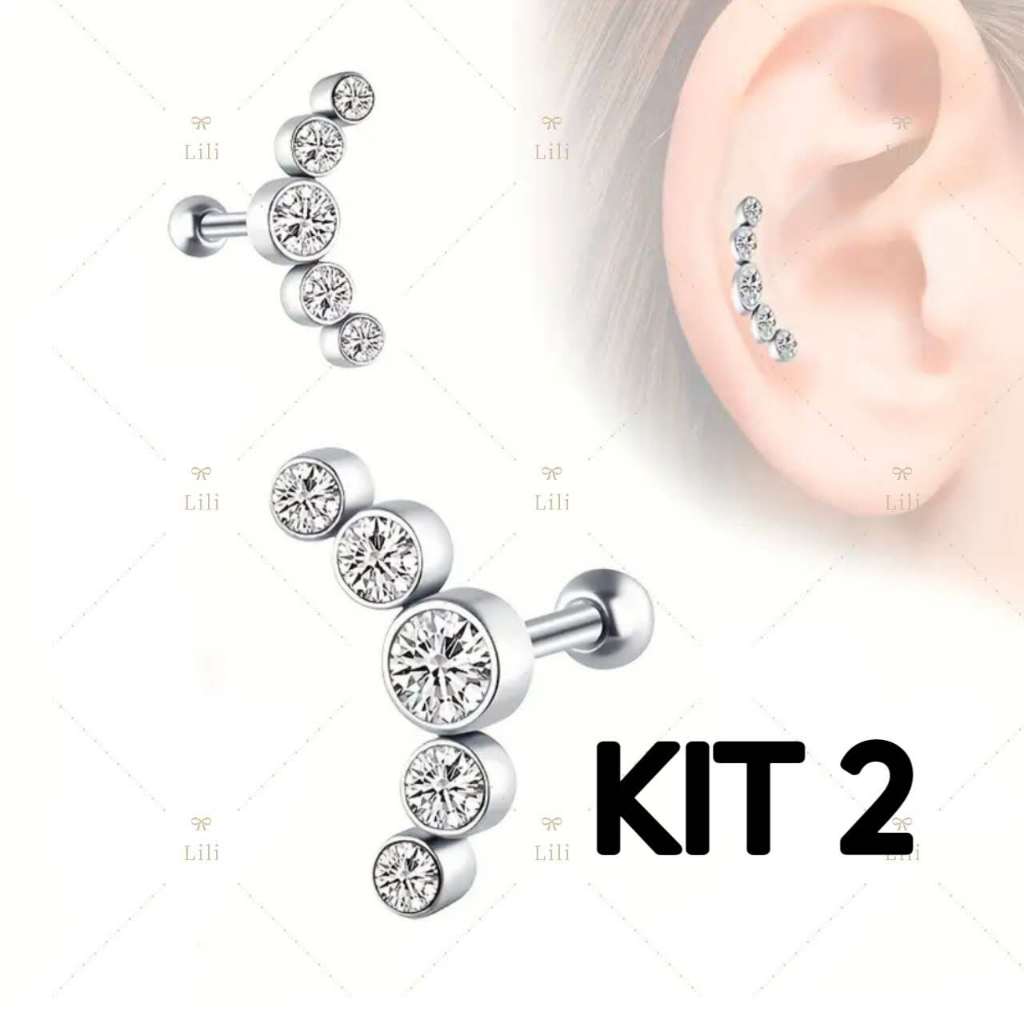 Kit 2 Piercing Minibarbell Aço Cirúrgico 5 Pedras Strass / Conch/tragus/helix