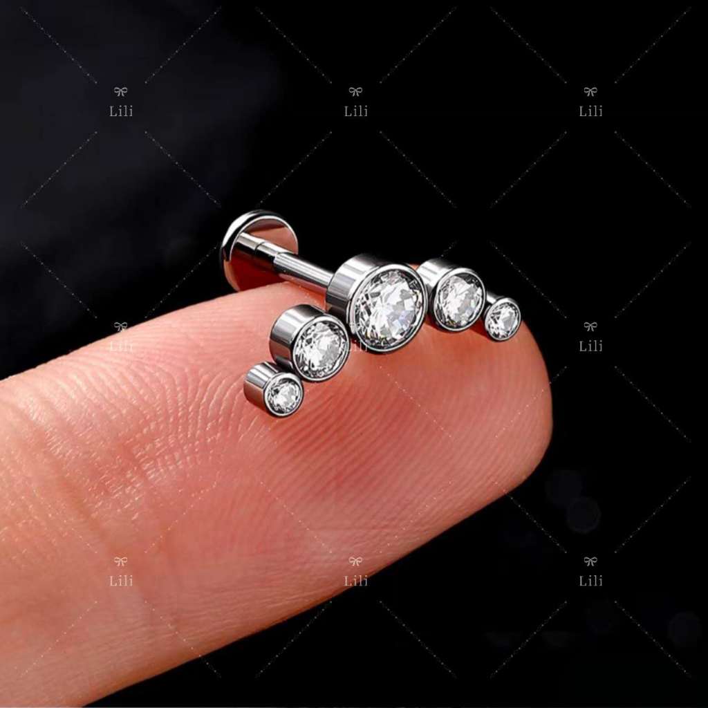 Kit 12 Piercing Labret Aço Cirúrgico com 5 Pedras Zircônia para Orelha Tragus Labial