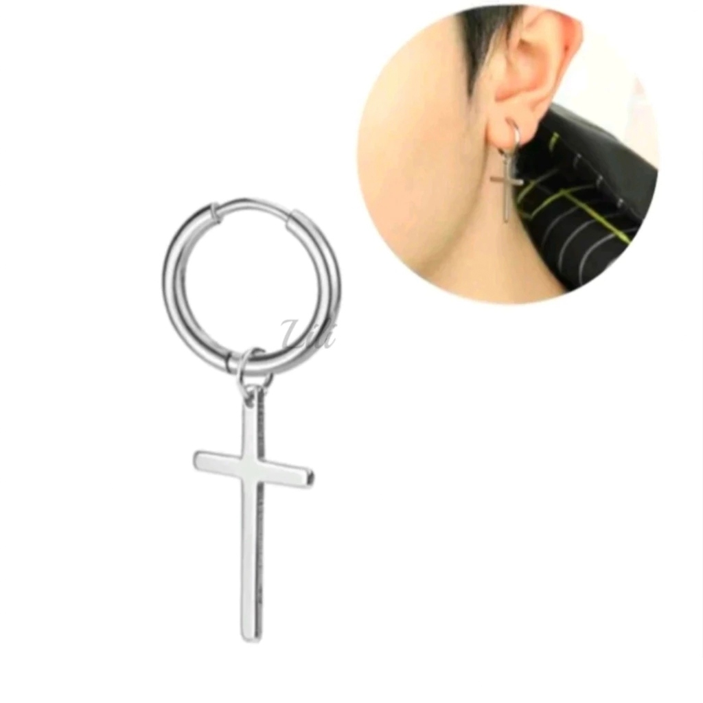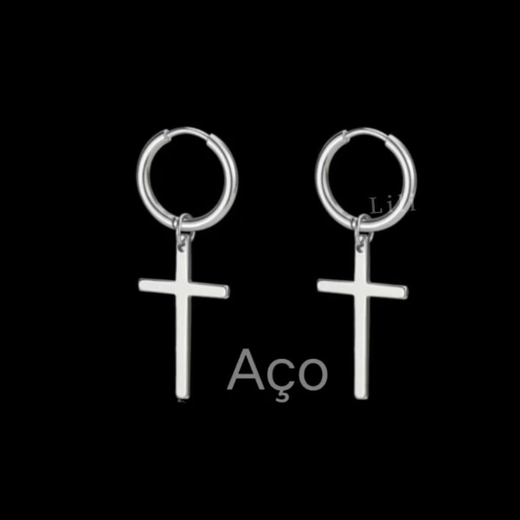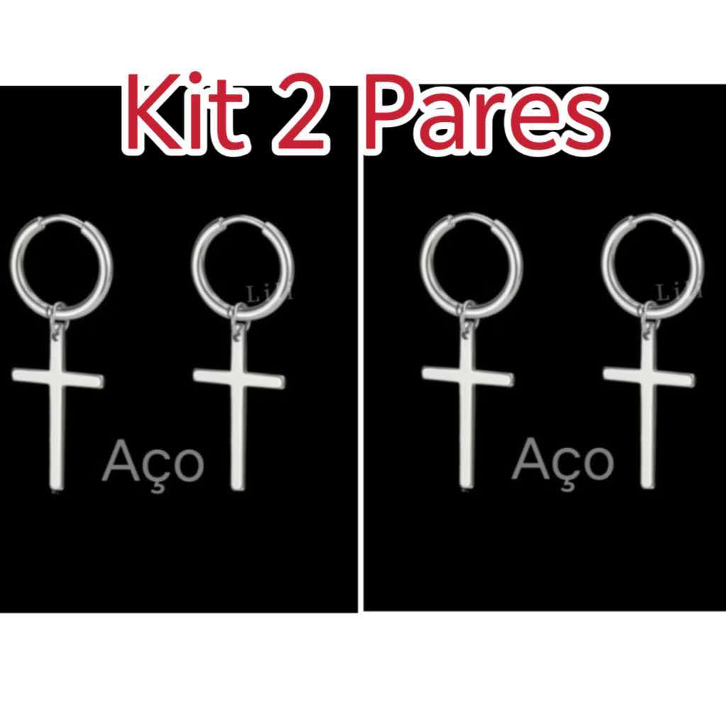 Kit 2 Pares de Brinco Argola click com Pingente Cruz De Aço Inoxidával