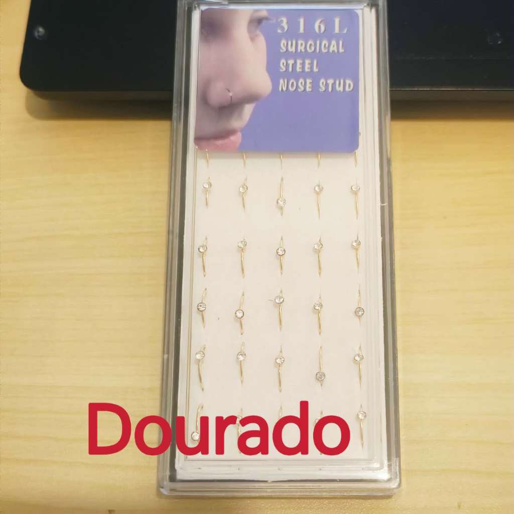 kit 40 Piercing De Nariz Argolinha Prata/Dourado Com Pedra Strass Prata