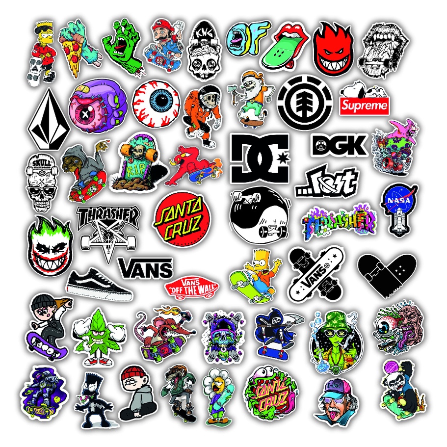 Kit 50 Adesivos Stickers Supreme Hype A prova D'Agua para Skate ou Notebook Carro Moto Top