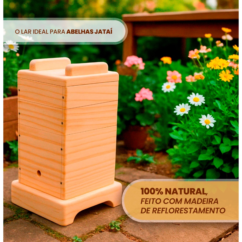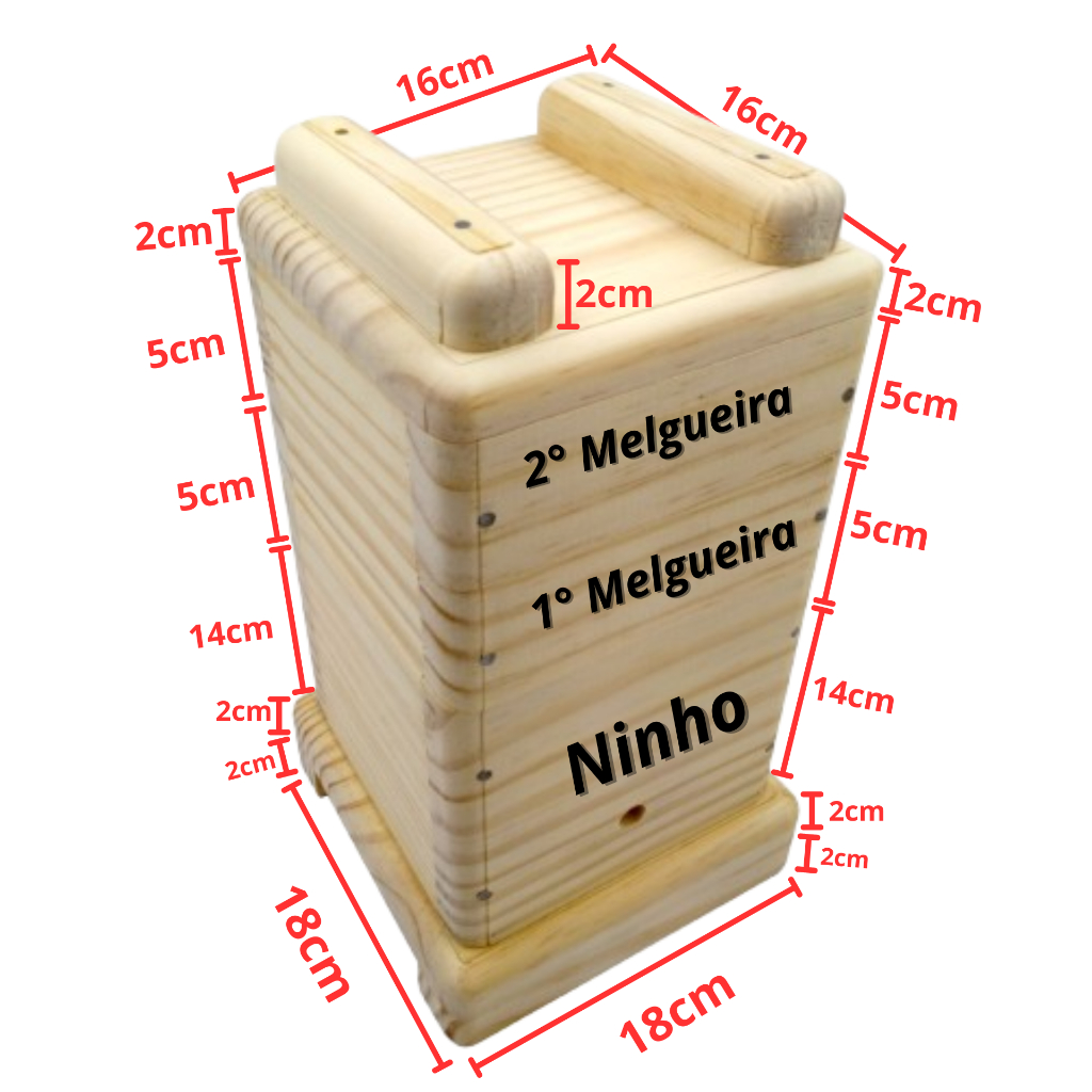 Caixa Para Abelha Jataí 12x12 Com encaixe acetato 2 melgueiras + Suporte De Parede
