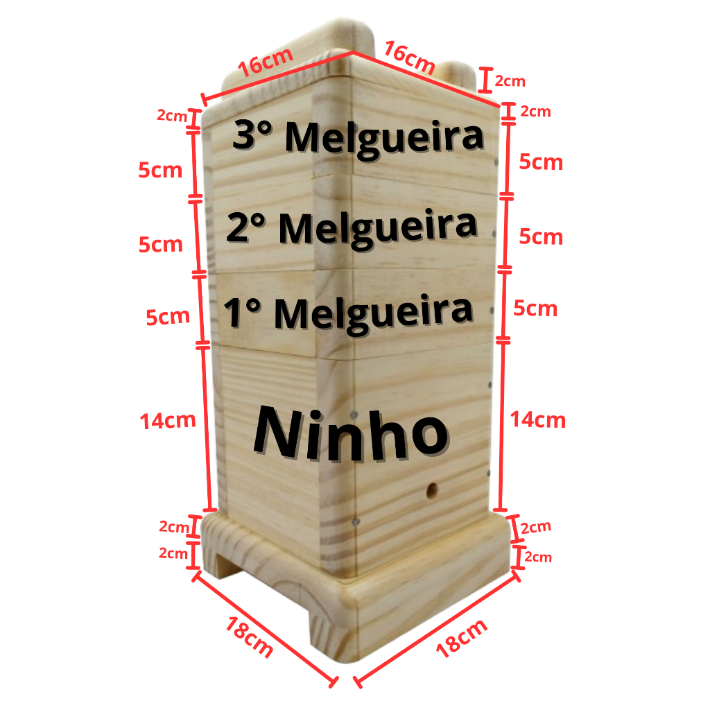 Caixa Para Abelha Jataí 12x12 Com encaixe acetato 3 Melgueiras