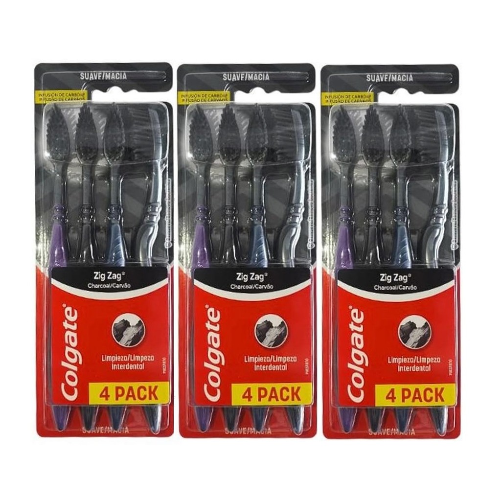 Escova Dental Colgate ZigZag Carvão 4 unid