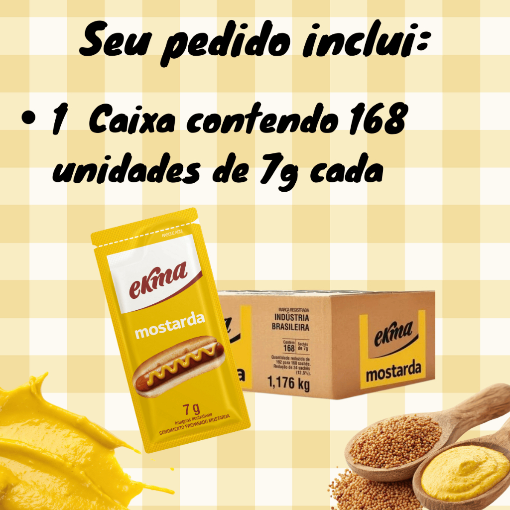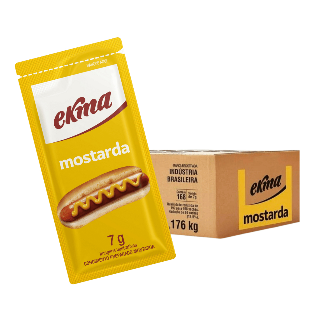 Mostarda Ekma em Sachê 7g Caixa com 168 Unidades para Hot Dog Lanches e Food Service