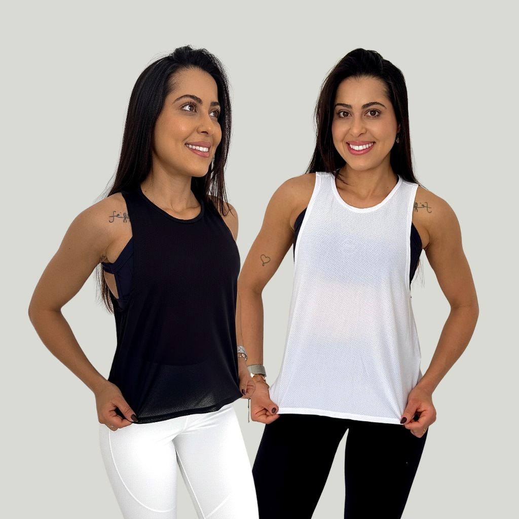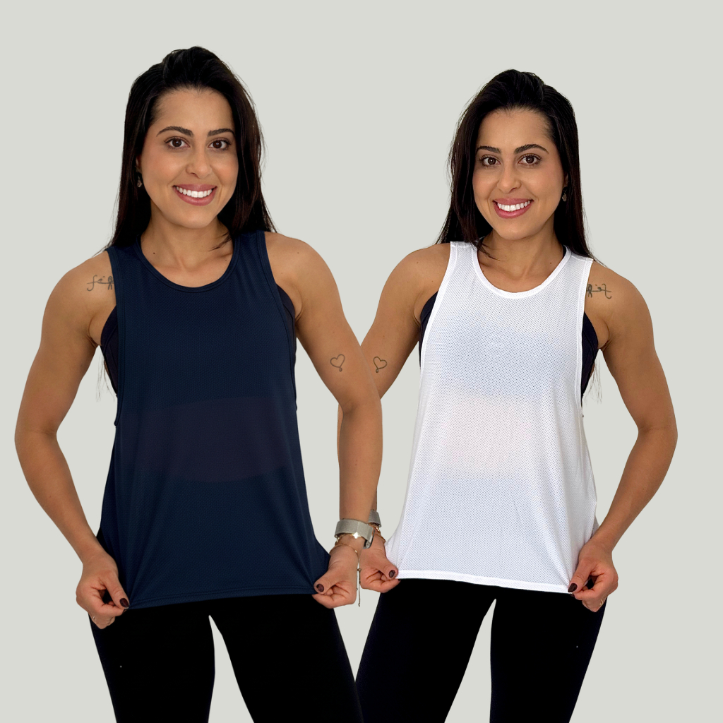 Kit 2 Regata Fitness Feminina Academia Dry Fit Tela Arejada