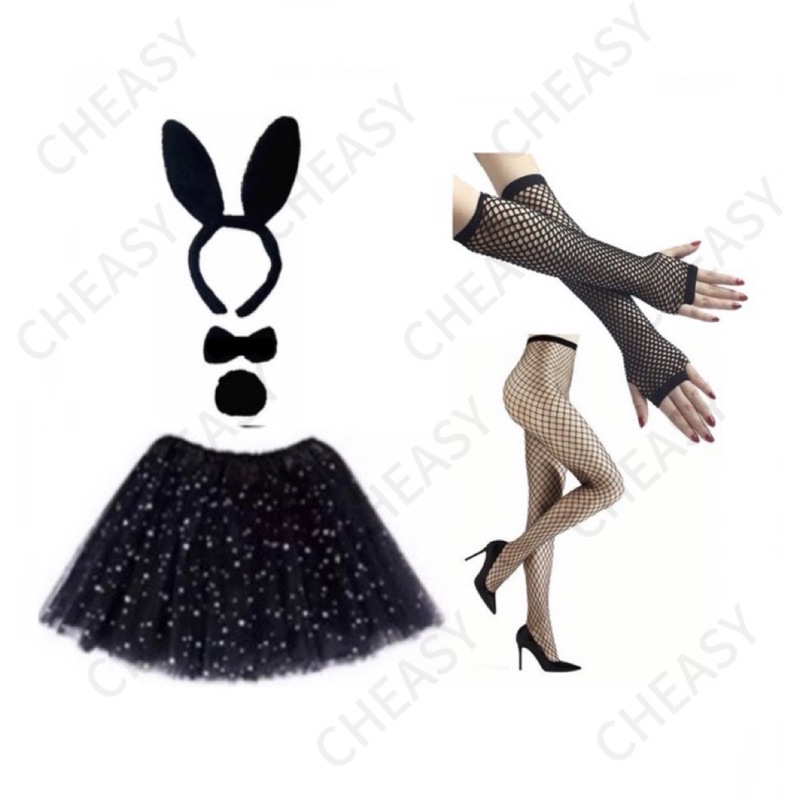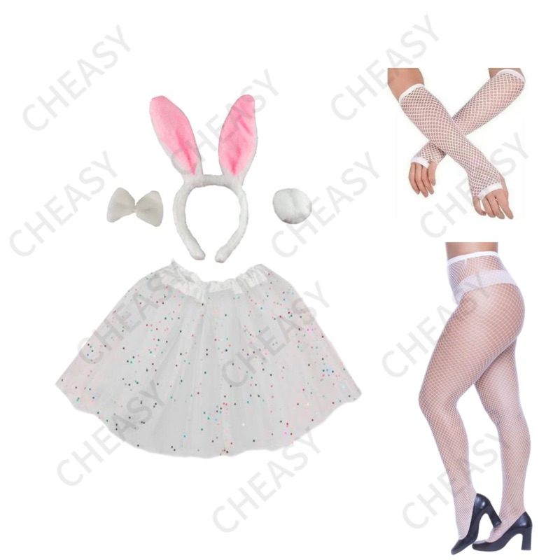 Kit Coelho + Luva +Meia + Saia Tule /Fantasia Coelho Festas Carnaval