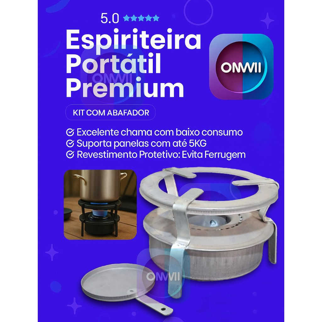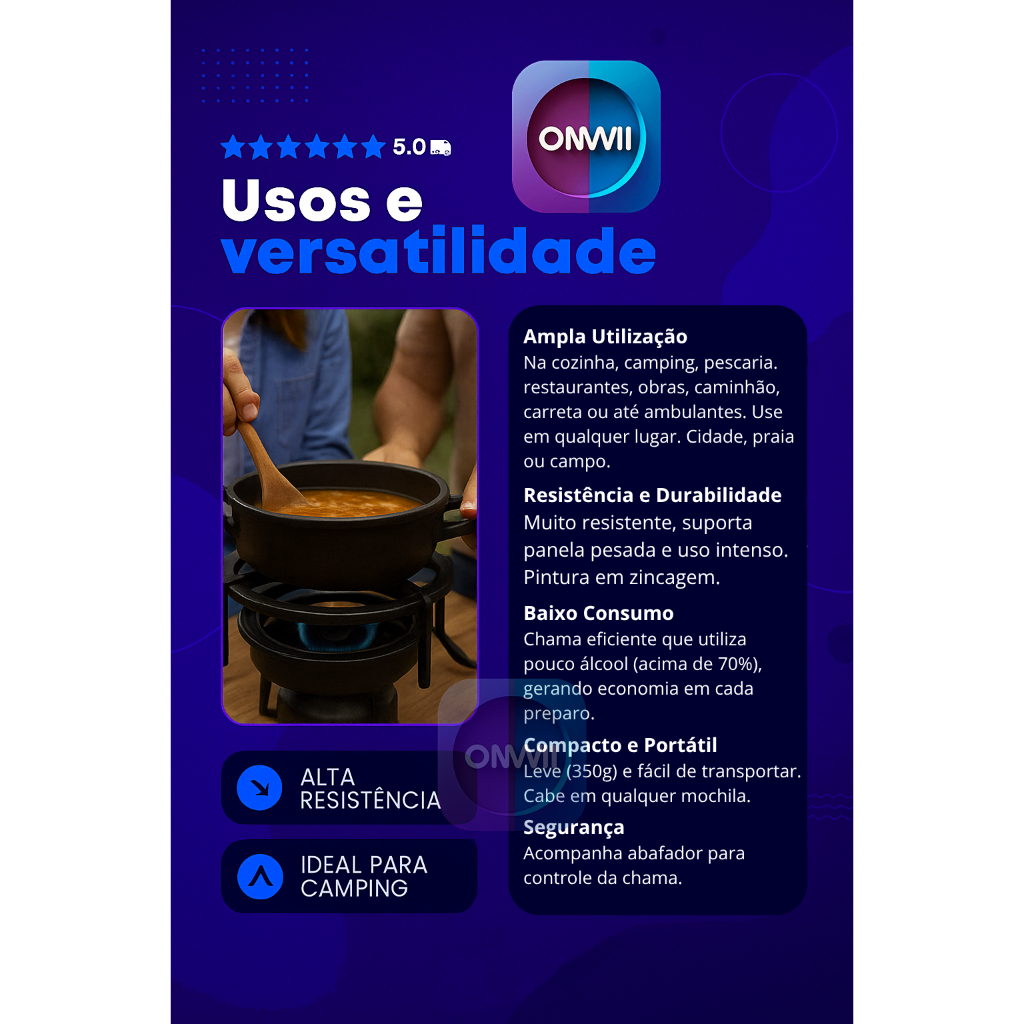 Fogão Fogareiro Portátil Amarelo 1 Boca Espiriteira à Álcool com Abafador Camping Pesca