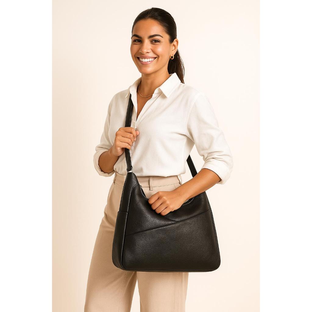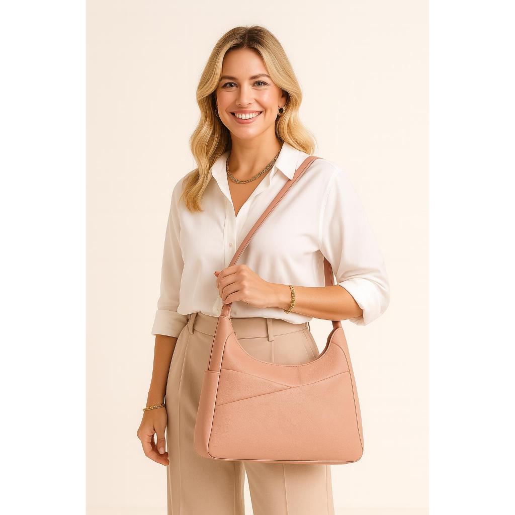 Bolsa Feminina Ombro e Transversal Couro Sintético Com Divisórias Média Espaçosa Casual Moderna