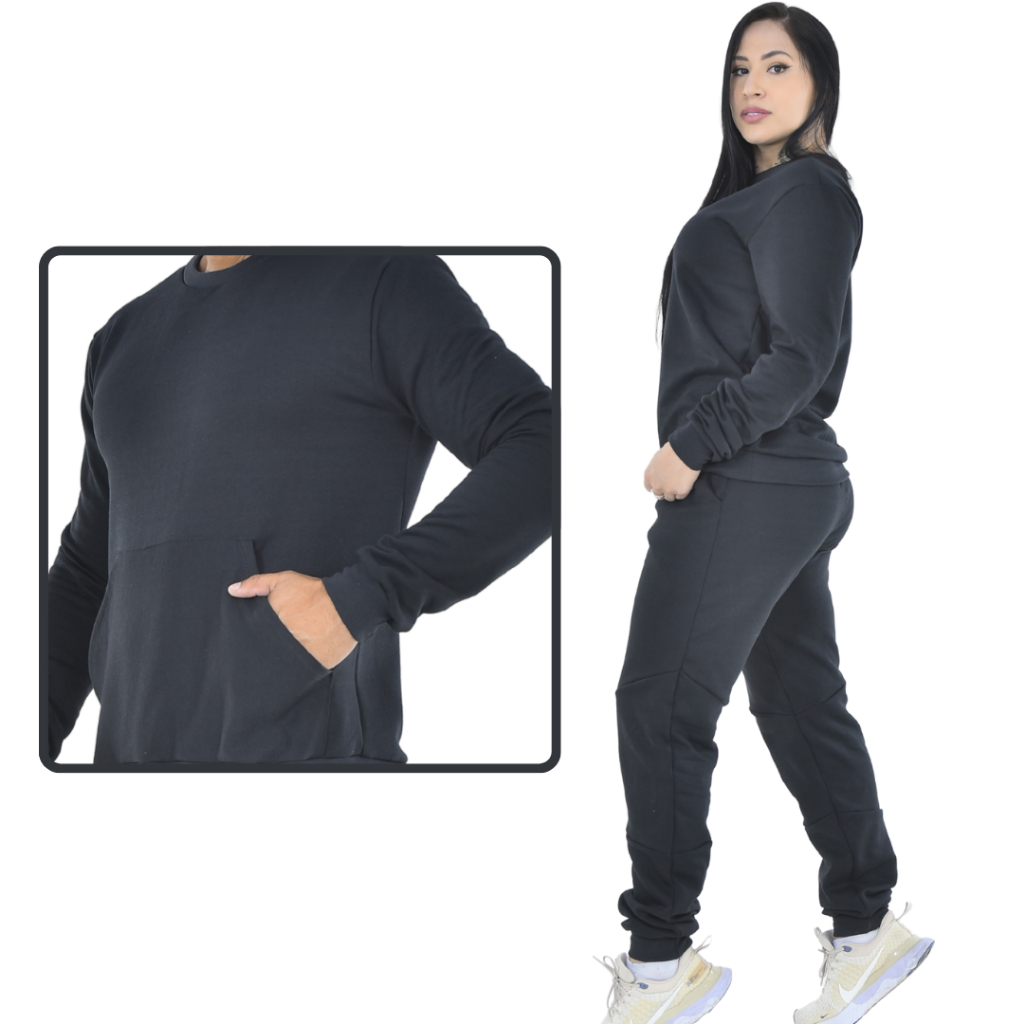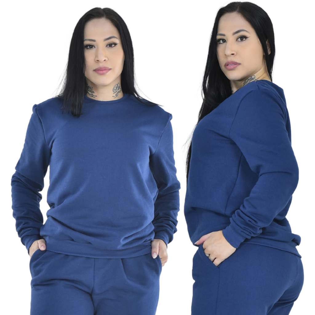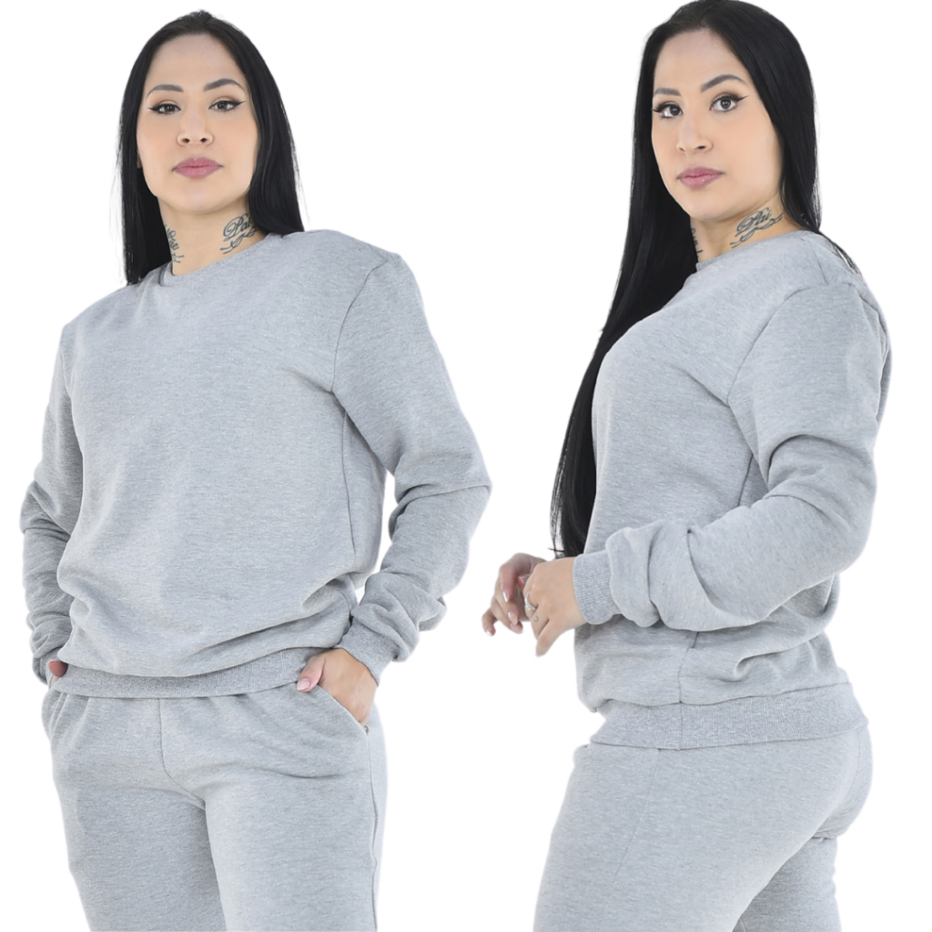 Blusa Moletom Feminina de Frio Flanelado Blusão Casaco Peluciado com Bolso Cangurú