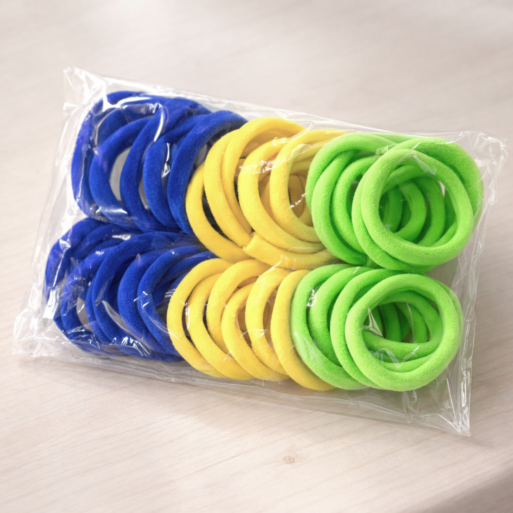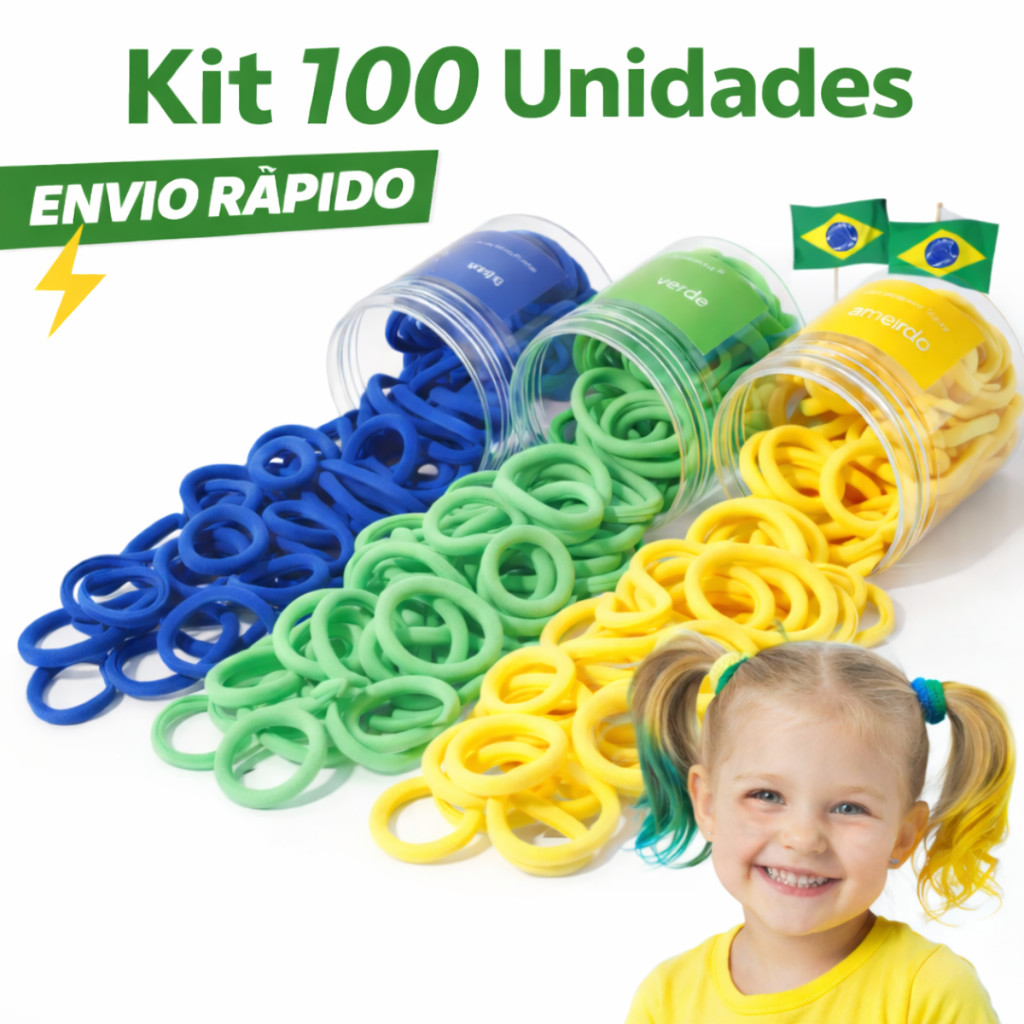 Kit 100 Xuxinhas de Cabelo Elásticos Coloridos Resistentes Infantil/Adulto Copa do Mundo Brasil