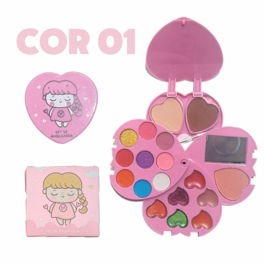 Kit Maquiagem infantil beleza sombras blush batom Completo presente feminino seria princesa