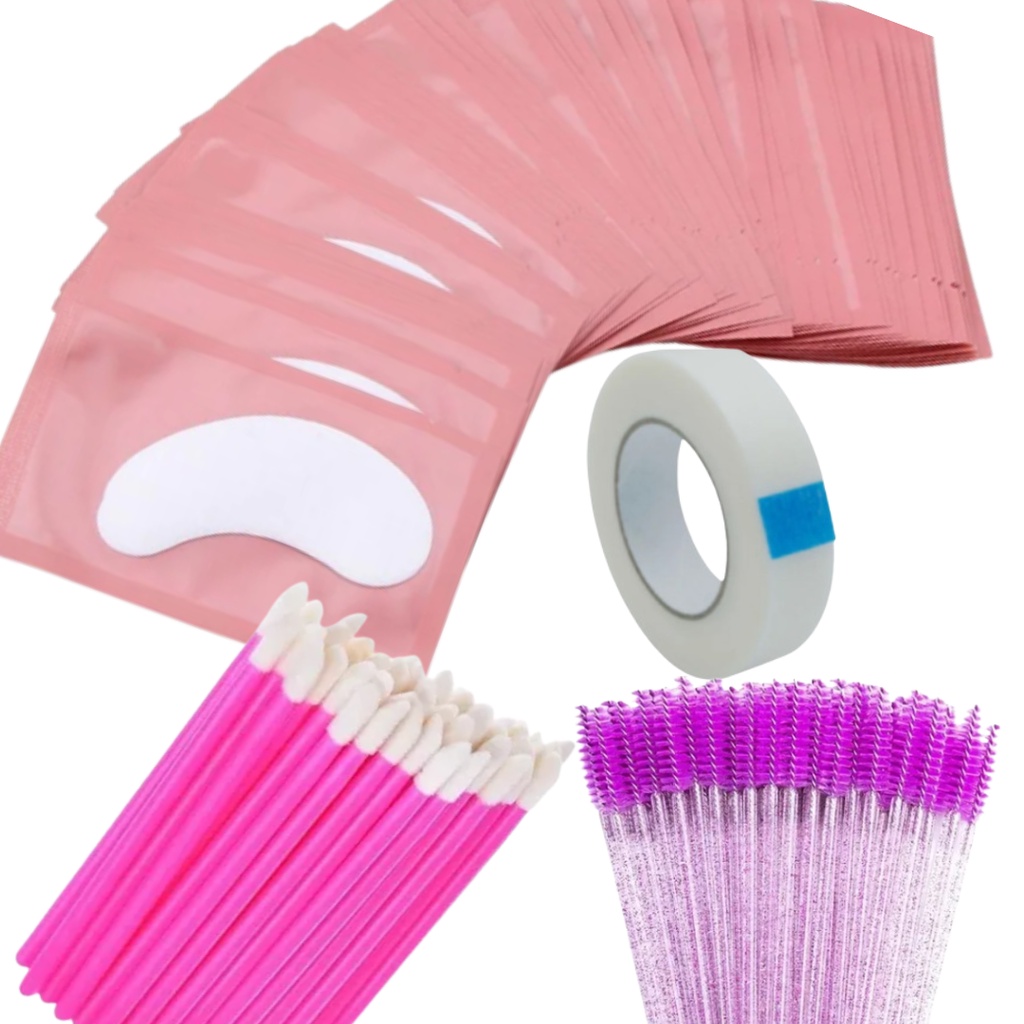 Pad Kit 50 Pares de Gel Pad + Fita Transpore + 50 Escovinhas de Cílios + 50 Aplicador de Batom Gloss Descartável
