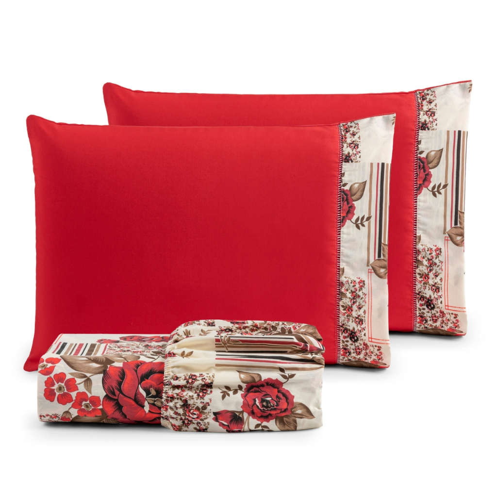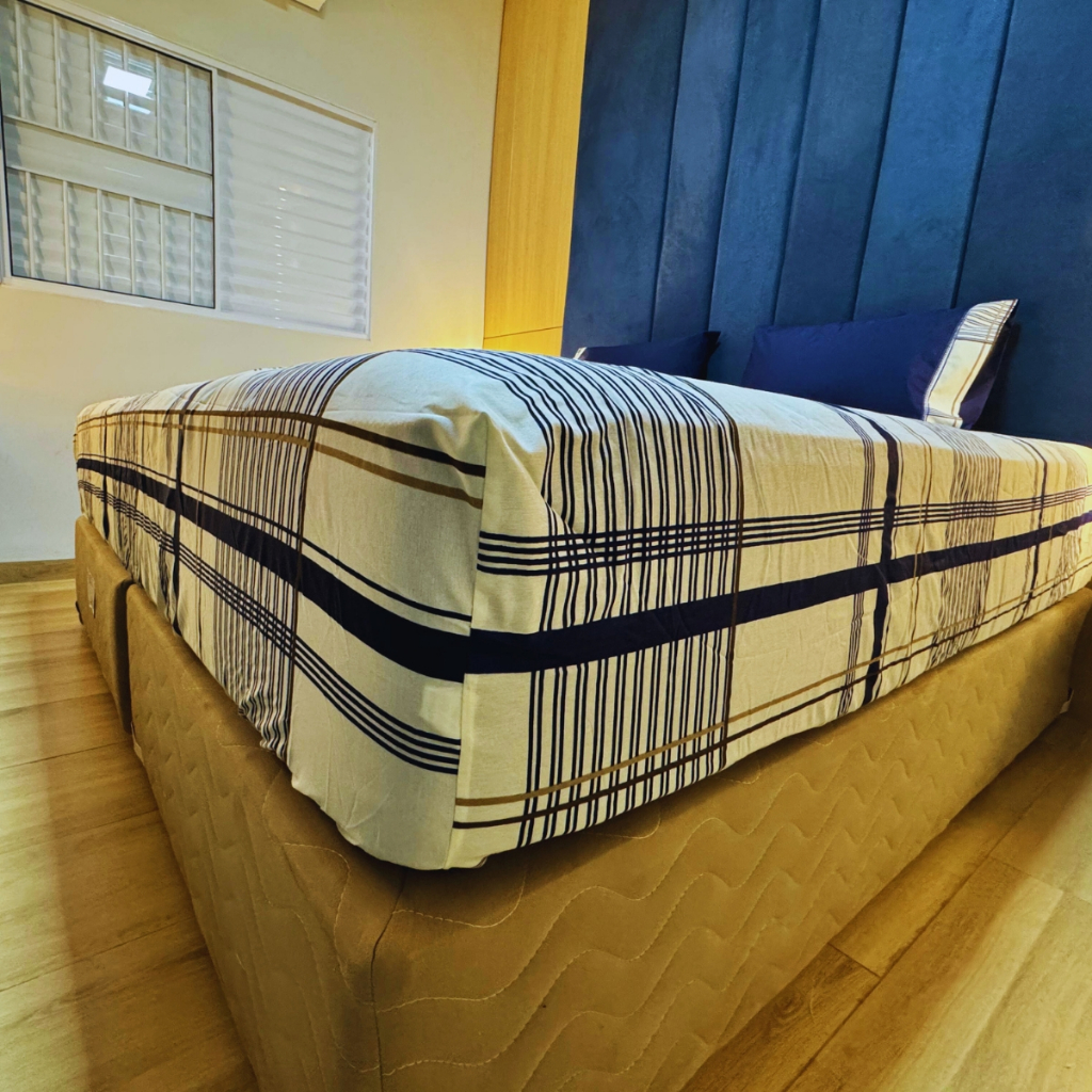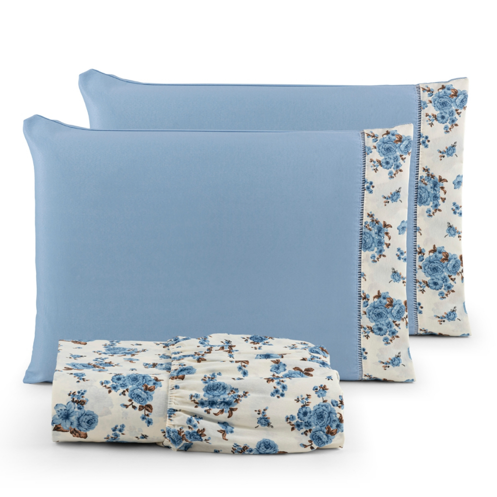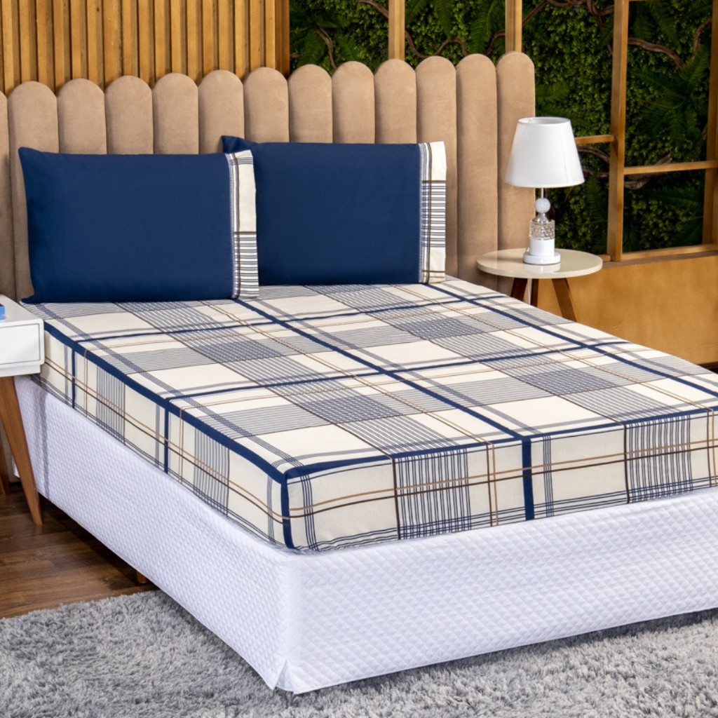 Jogo de lençol estampado Tecido 100% Algodão com elástico ponto palito King 3 peças - IMPERDÍVEL