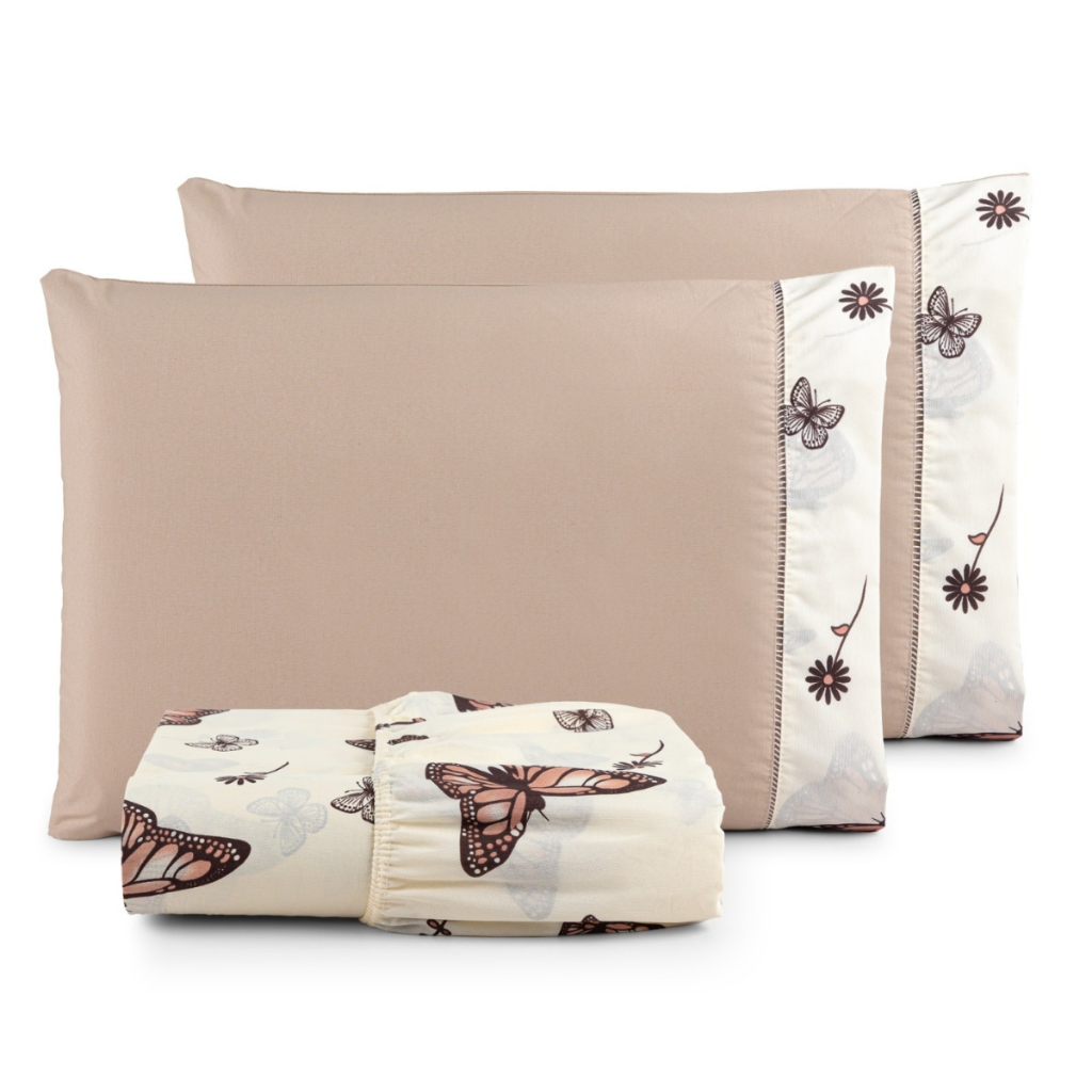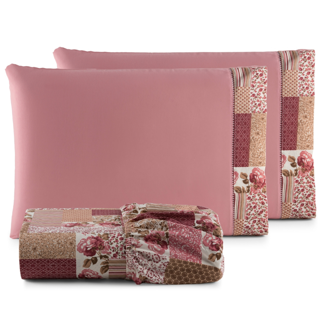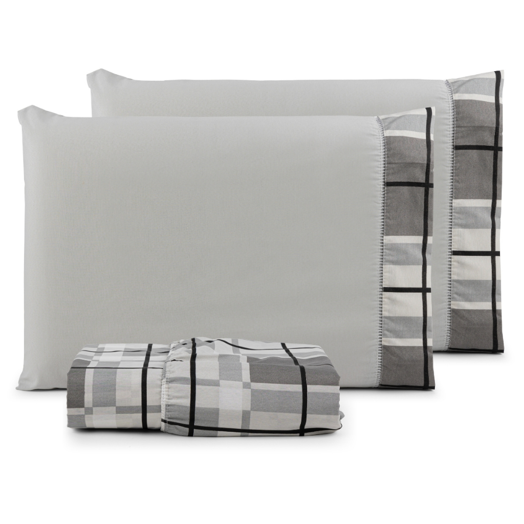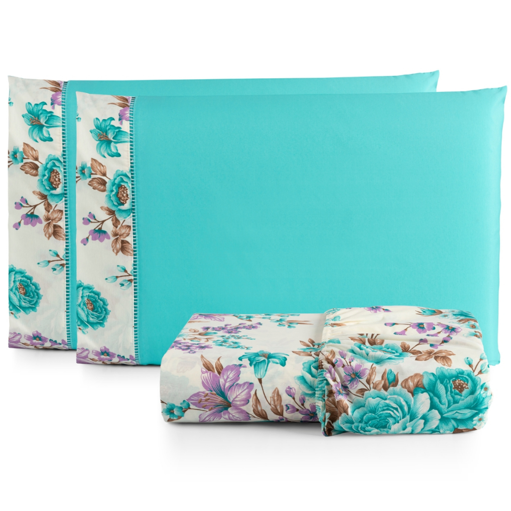 Jogo de lençol estampado Tecido 100% Algodão com elástico ponto palito King 3 peças - IMPERDÍVEL