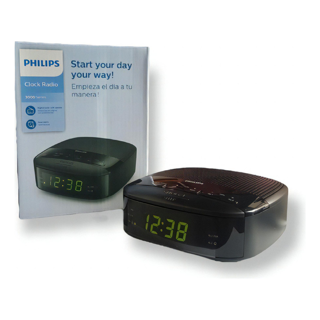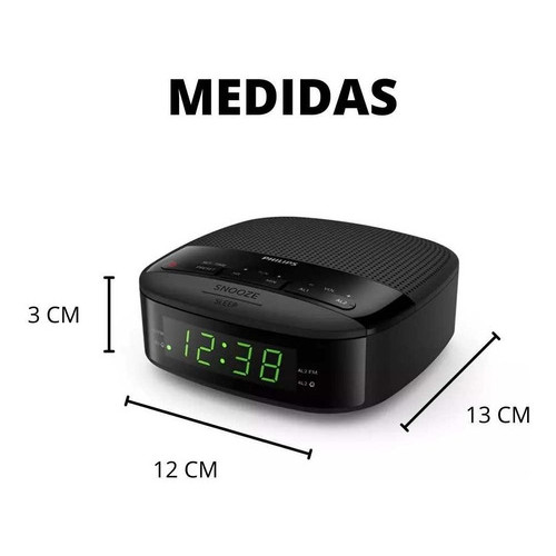 Relógio De Mesa Philips Compacto Alarme E Rádio Fm Bivolt Cor Preto 110V/220V