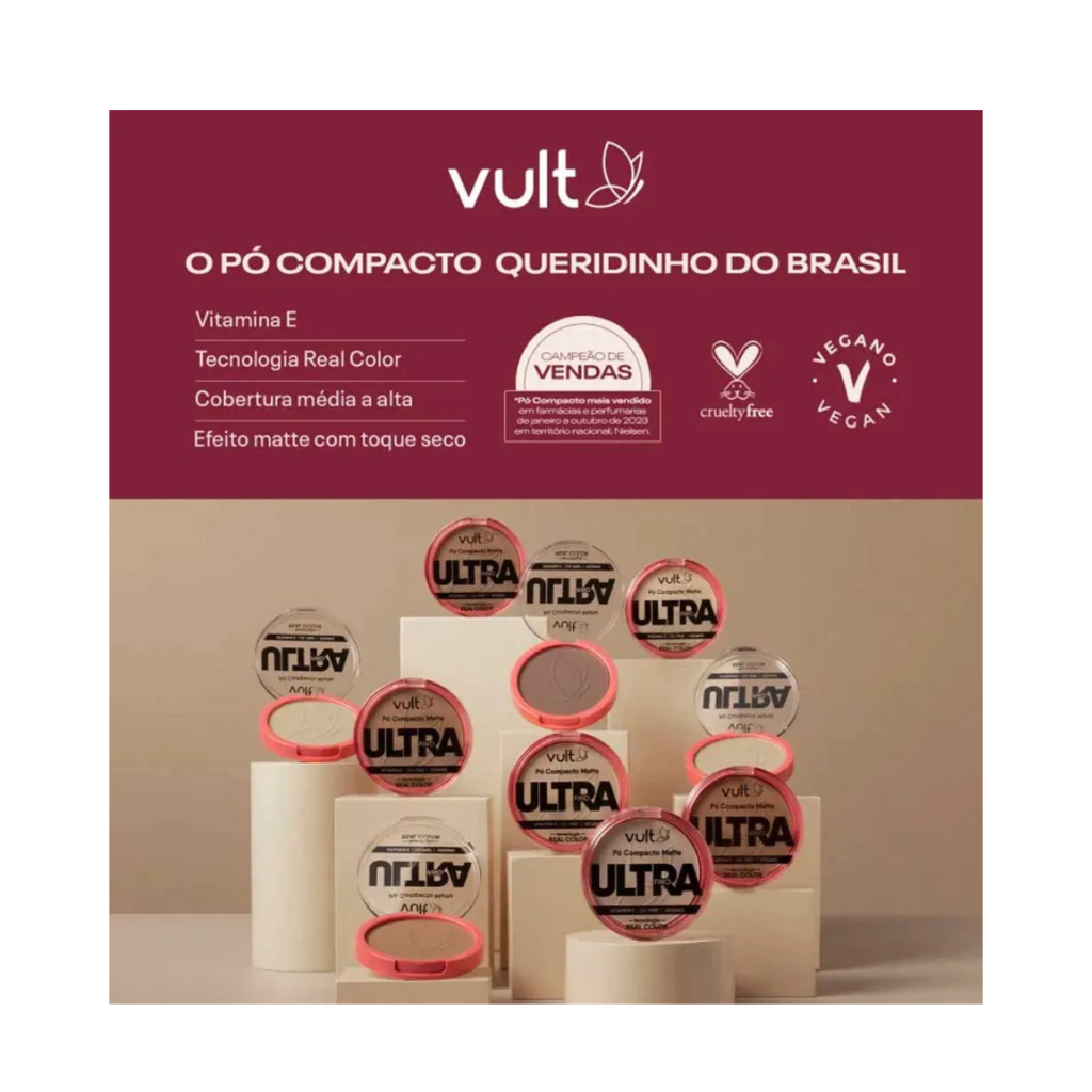 Pó Compacto Matte Ultrafino Vult, proporciona cobertura uniforme e toque seco