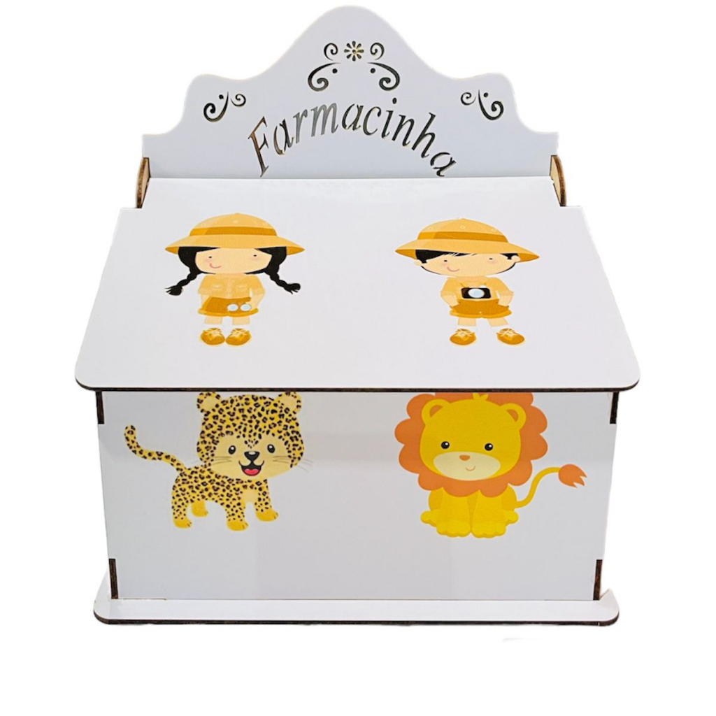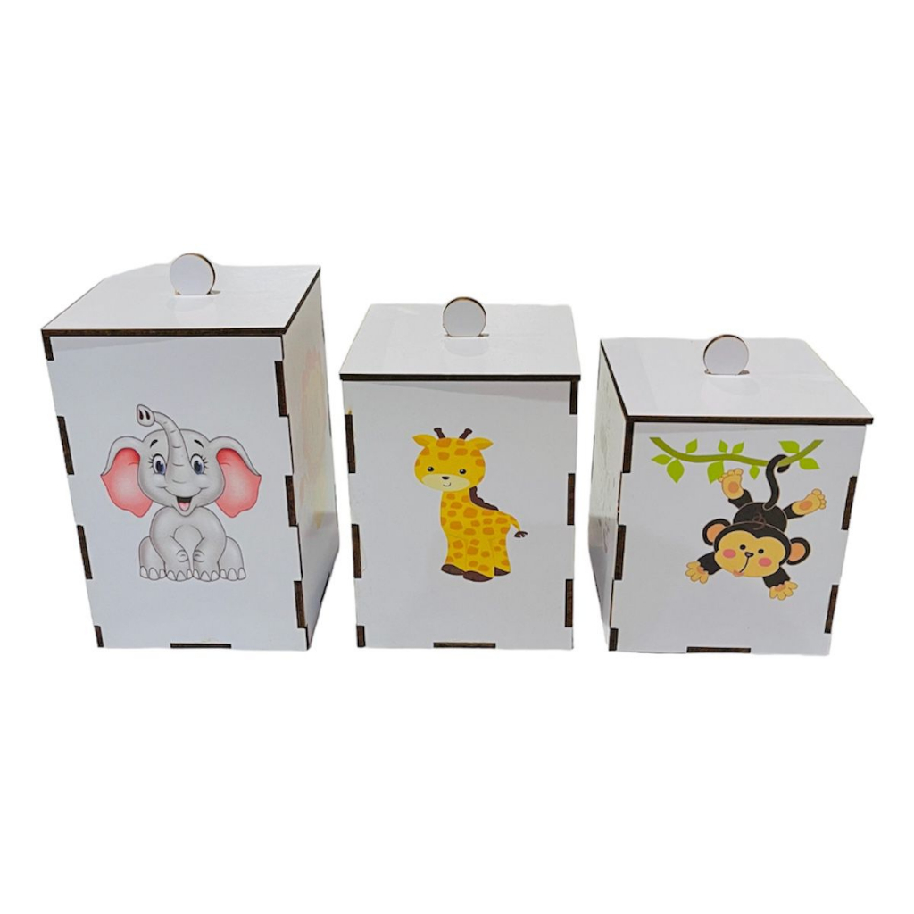 Kit Higiene Bebê Selva Safari 8 Peças Mdf Adesivado Branco
