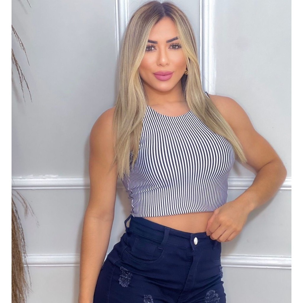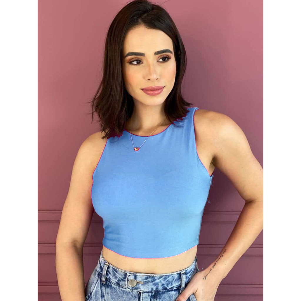 Cropped Regata Zaral Suplex Feminina Estilo Blogueira Tendências Super Envio !!