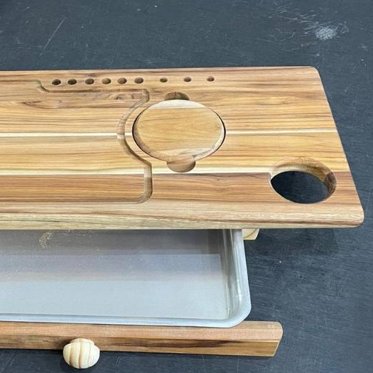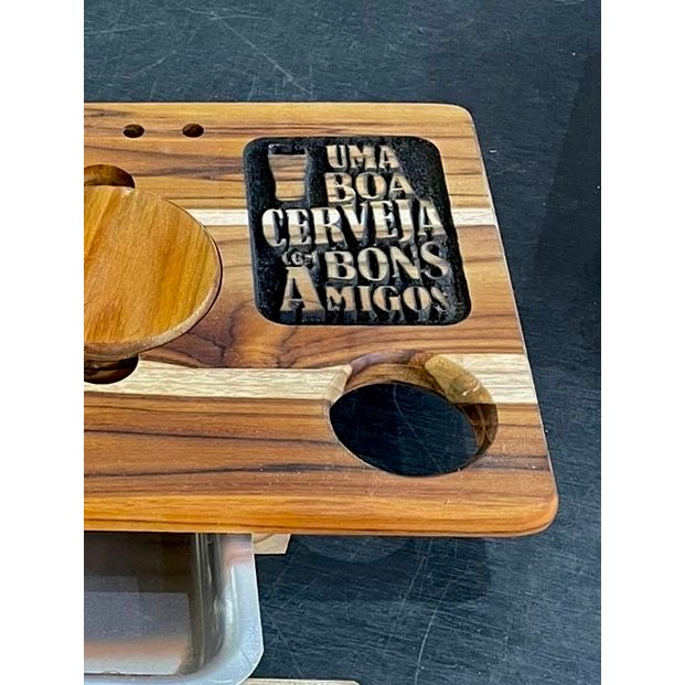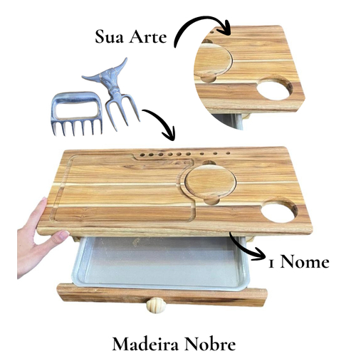 Tabua Corte Carne Churrasco Premium Madeira Com Gaveta Personalizada Alumínio Desfiador de Carne Garra de Urso e Garfo