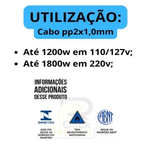 Extensão Elétrica Cabo pp 2x1.0 mm 20 metros reta 10A Bivolt com suporte