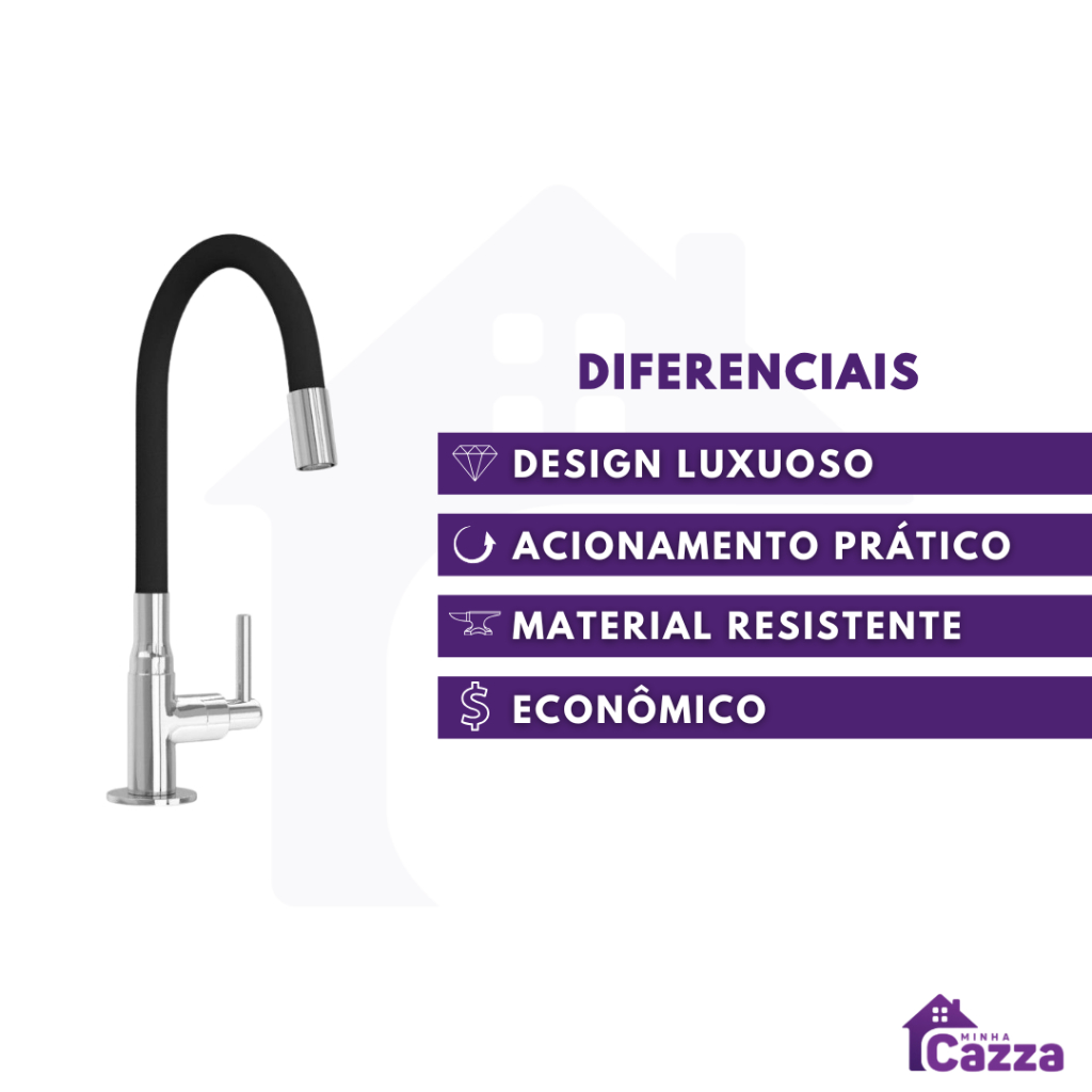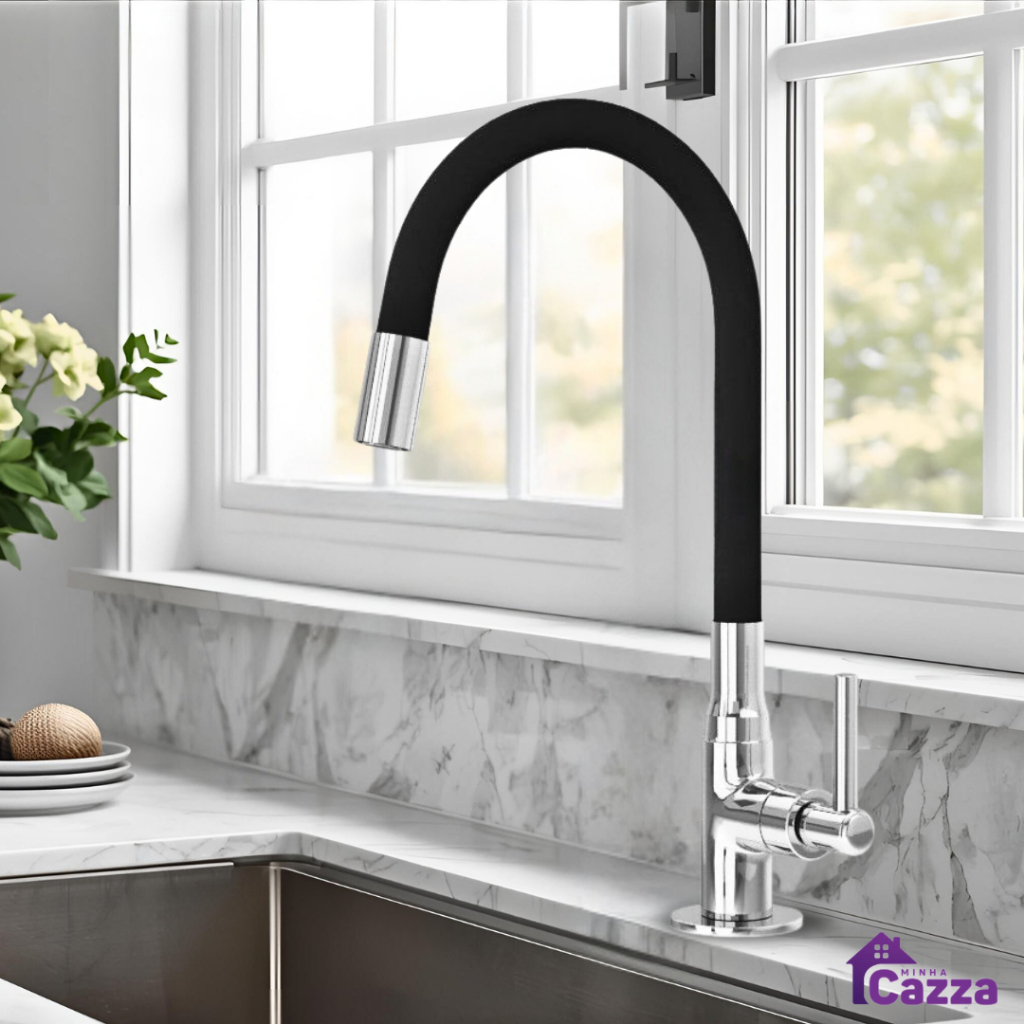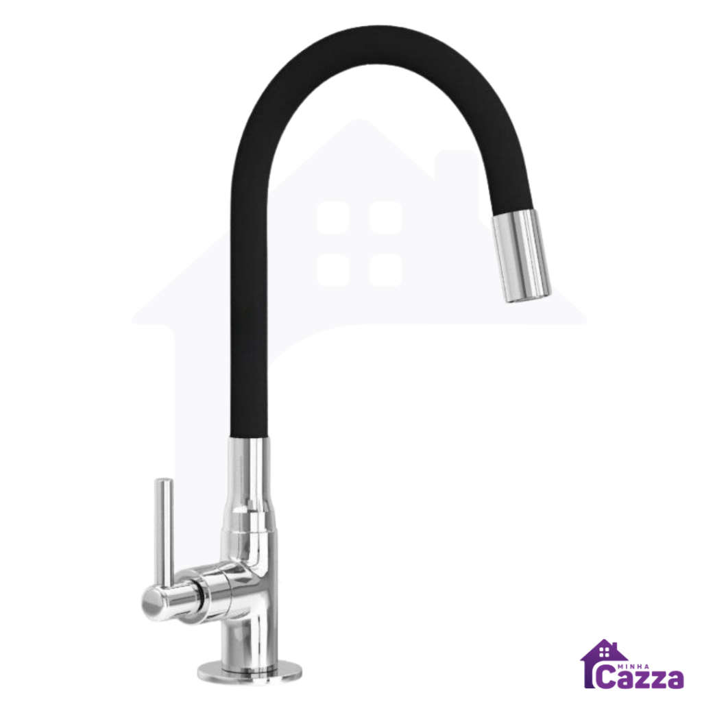 Torneira Metal Gourmet Cozinha ou Banheiro Preta Bancada Mesa Pia Cano Flexível 1/4 de volta