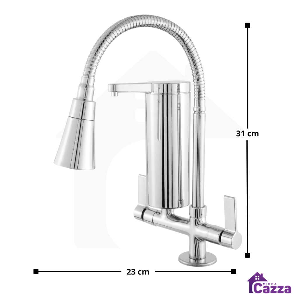 Torneira Cozinha Bancada Com Filtro Slim Flexível Gourmet Cromada Dupla Função Metal Inox Abs