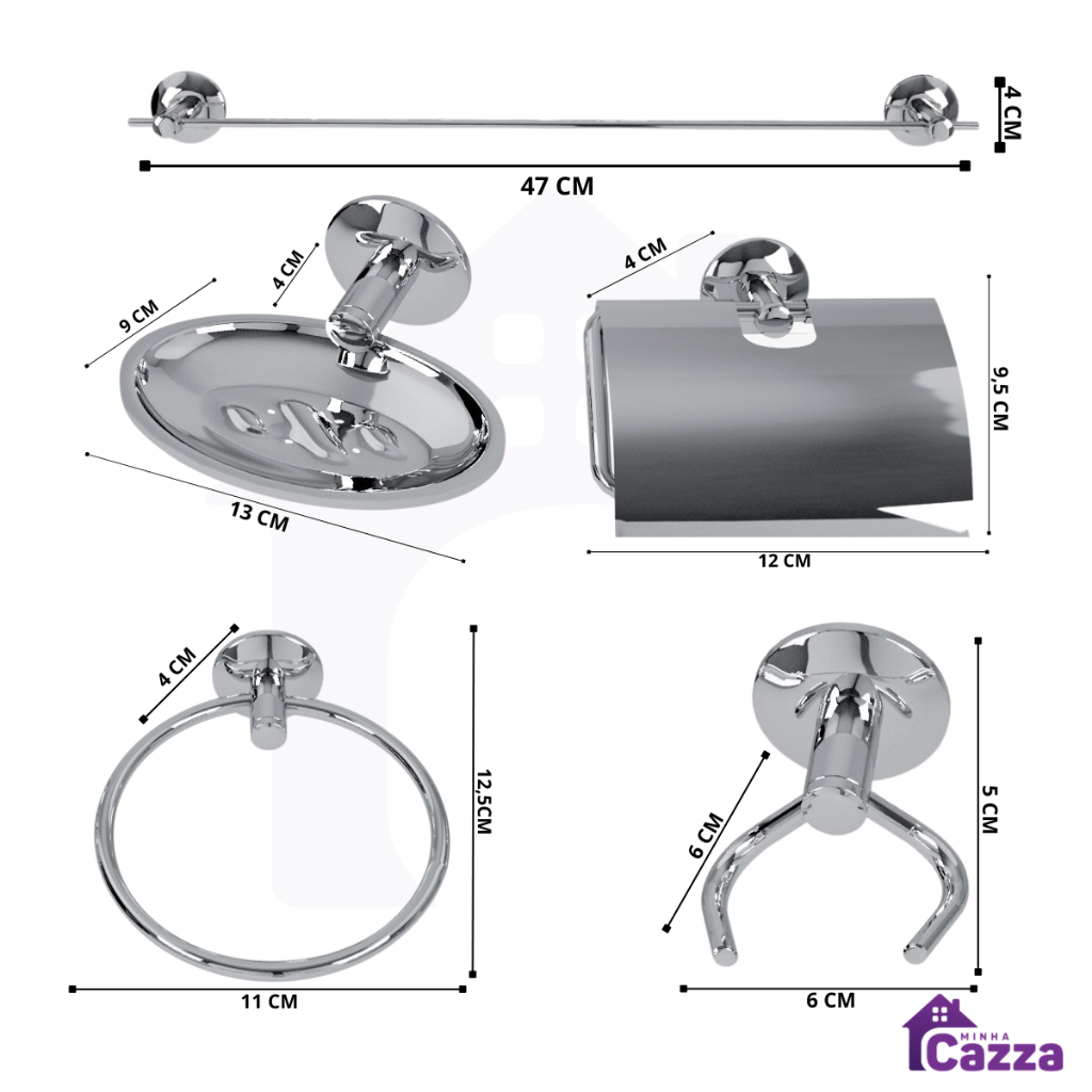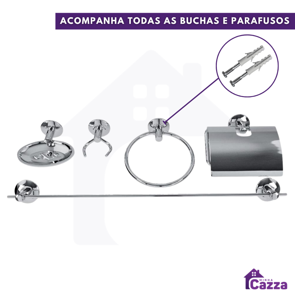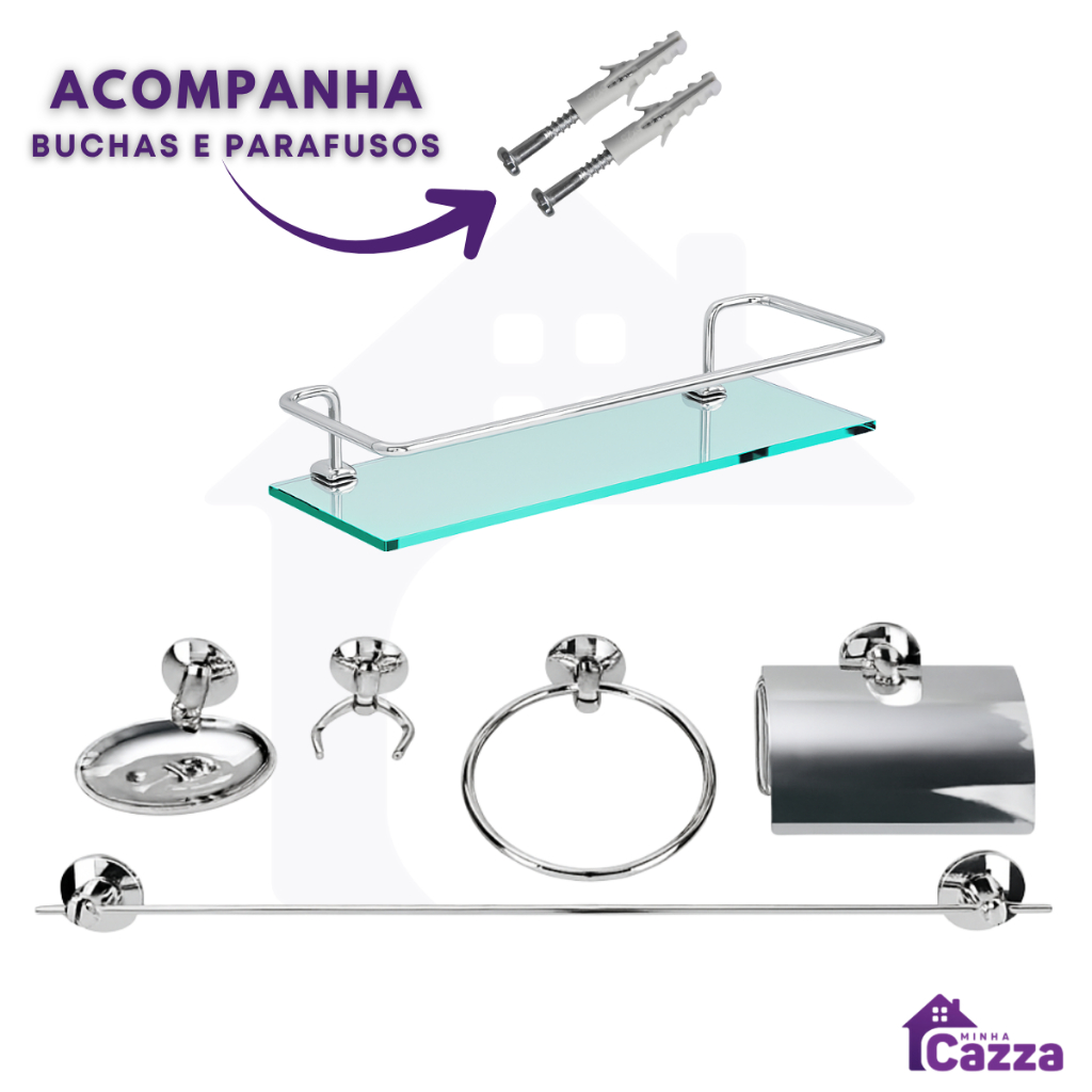 Kit Acessórios para Banheiros 6 peças com Porta Shampoo Reto Acompanha Parafusos