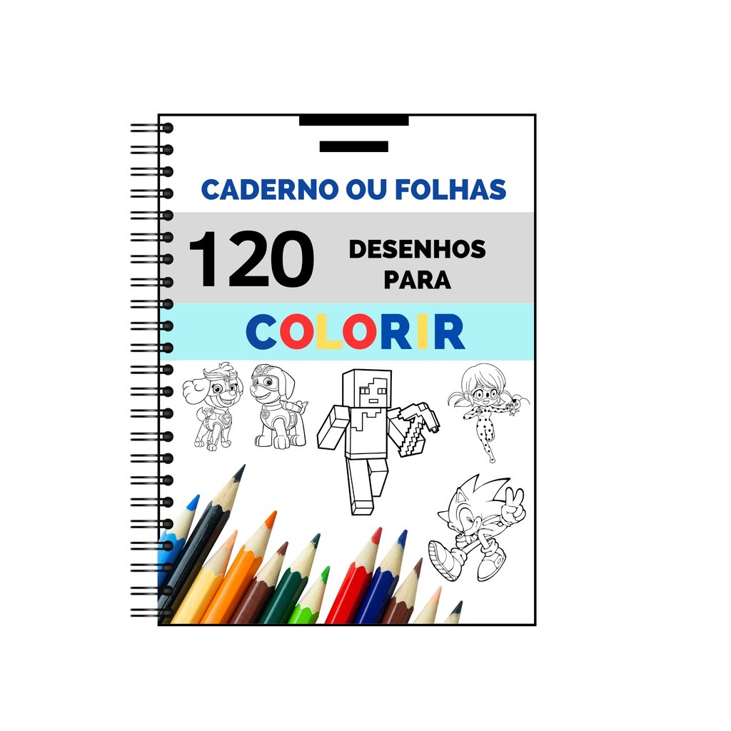 Caderno Livro De Colorir Infantil com 120 desenhos