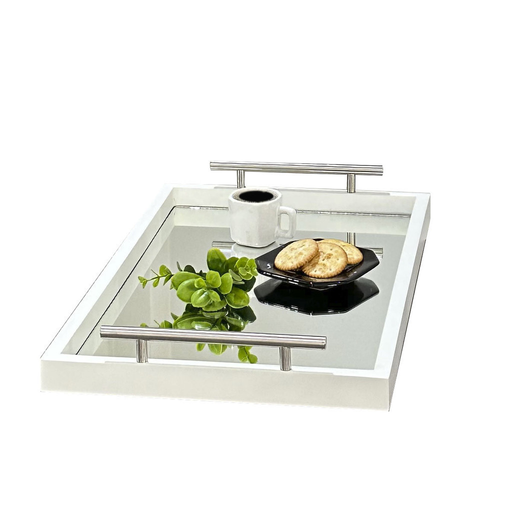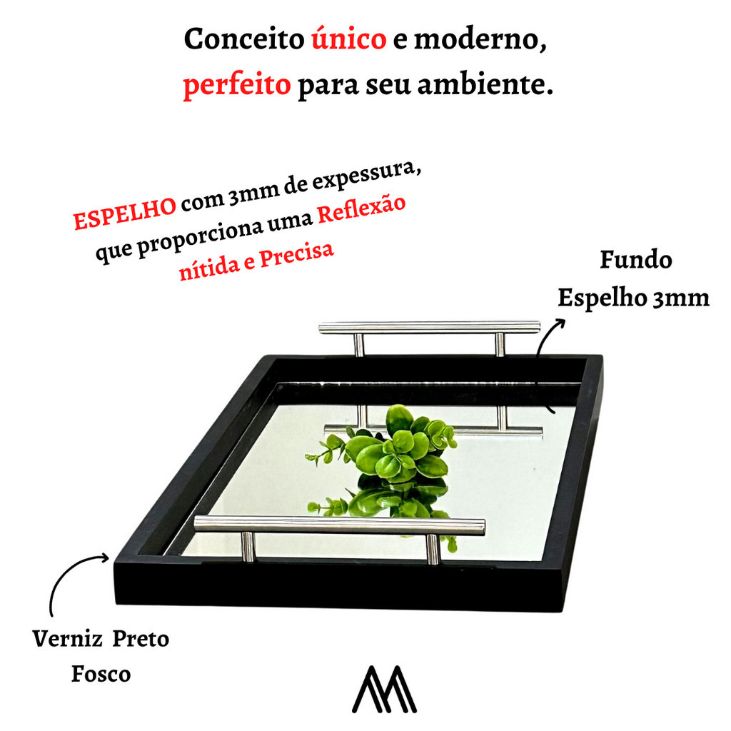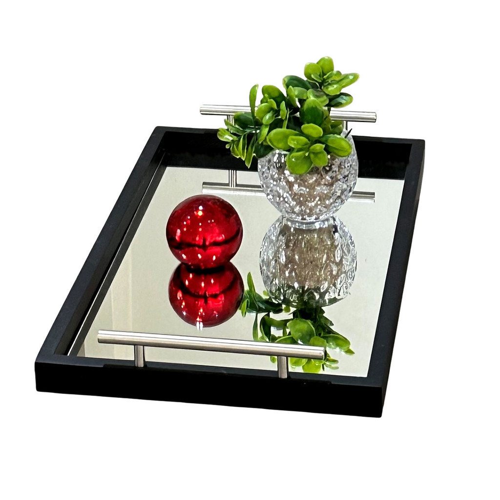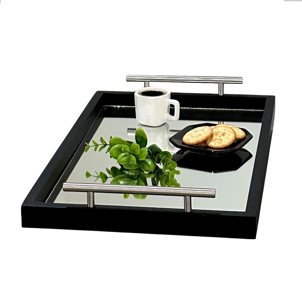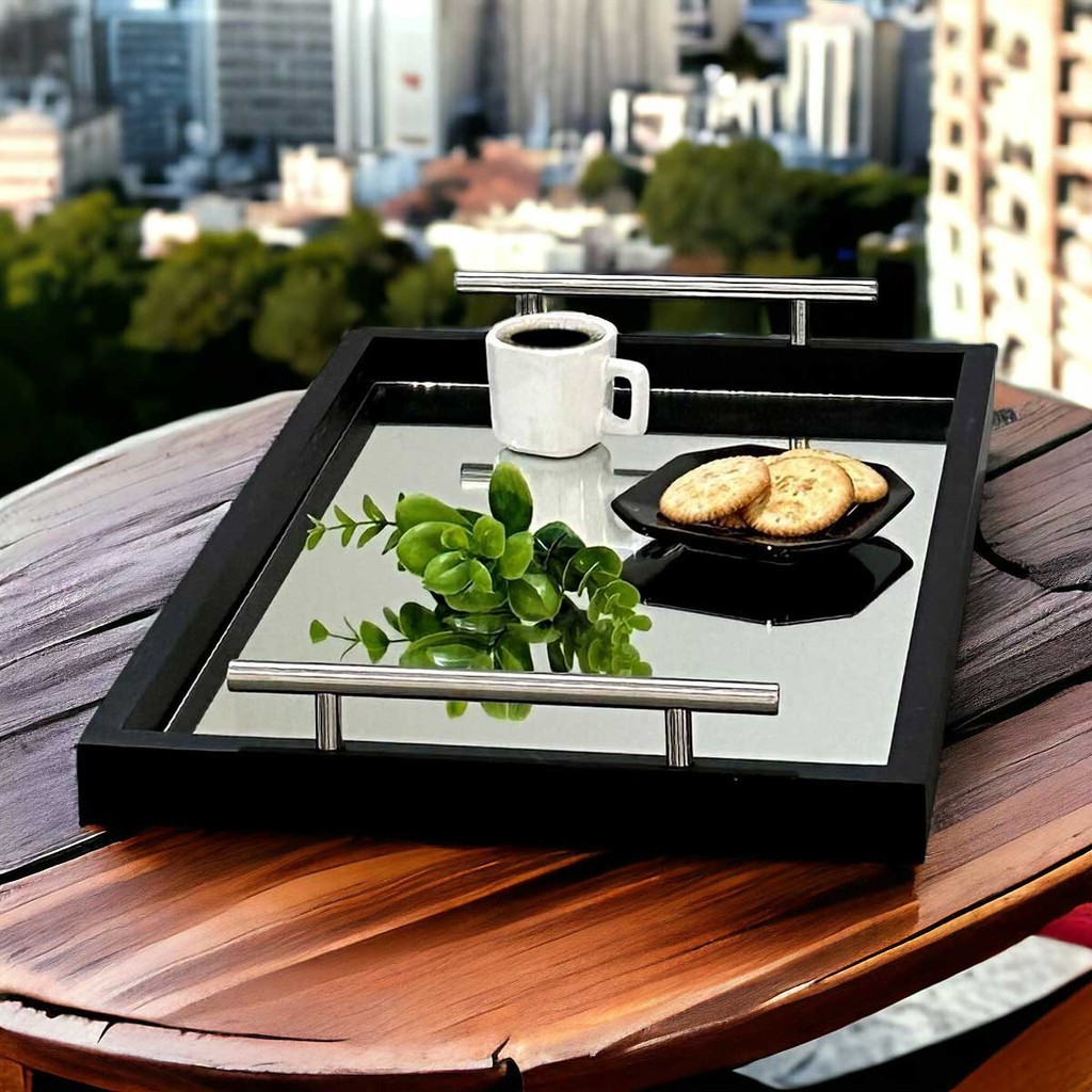 Bandeja Decorativa Espelhada Cantinho Café Bar Escritório Sala Estar Bebidas Espelho Recepção Servir Bebidas Casa