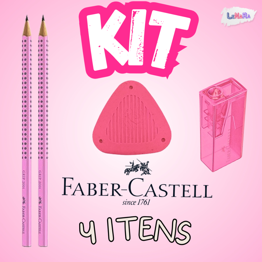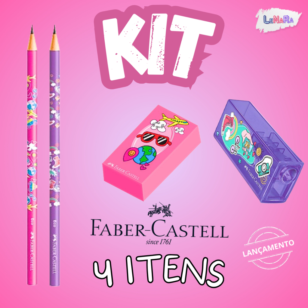 Kit Faber-Castell Escolar 2 Lápis de Escrever + 1 Borracha + 1 Apontador Volta ás aulas e Escritório