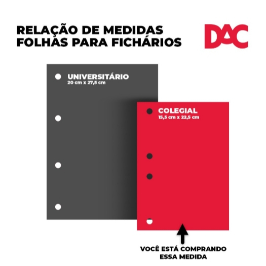 Refil de 96 folhas para fichario colegial DAC 283RE KIT ou unidade