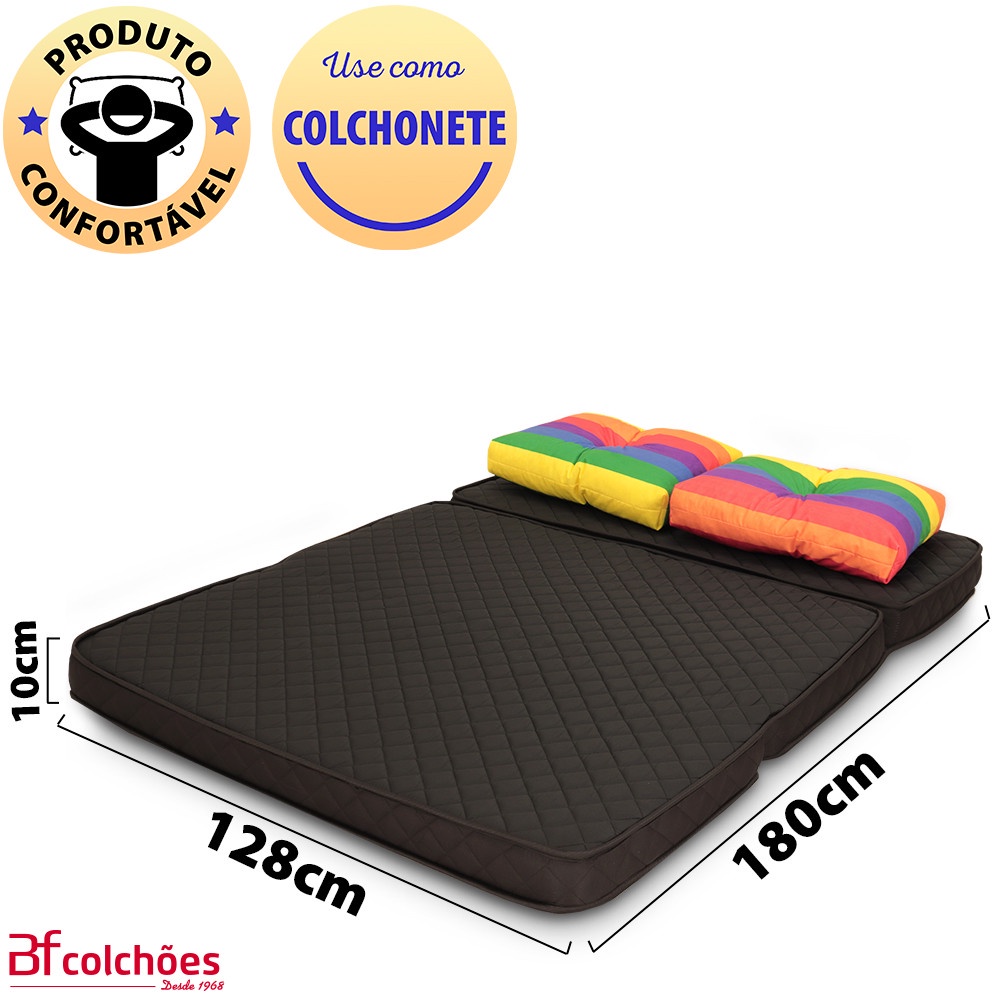 Puff Colchonete Dobrável / Sofá 3 em 1 Espuma + Travesseiro Casal BF Colchões
