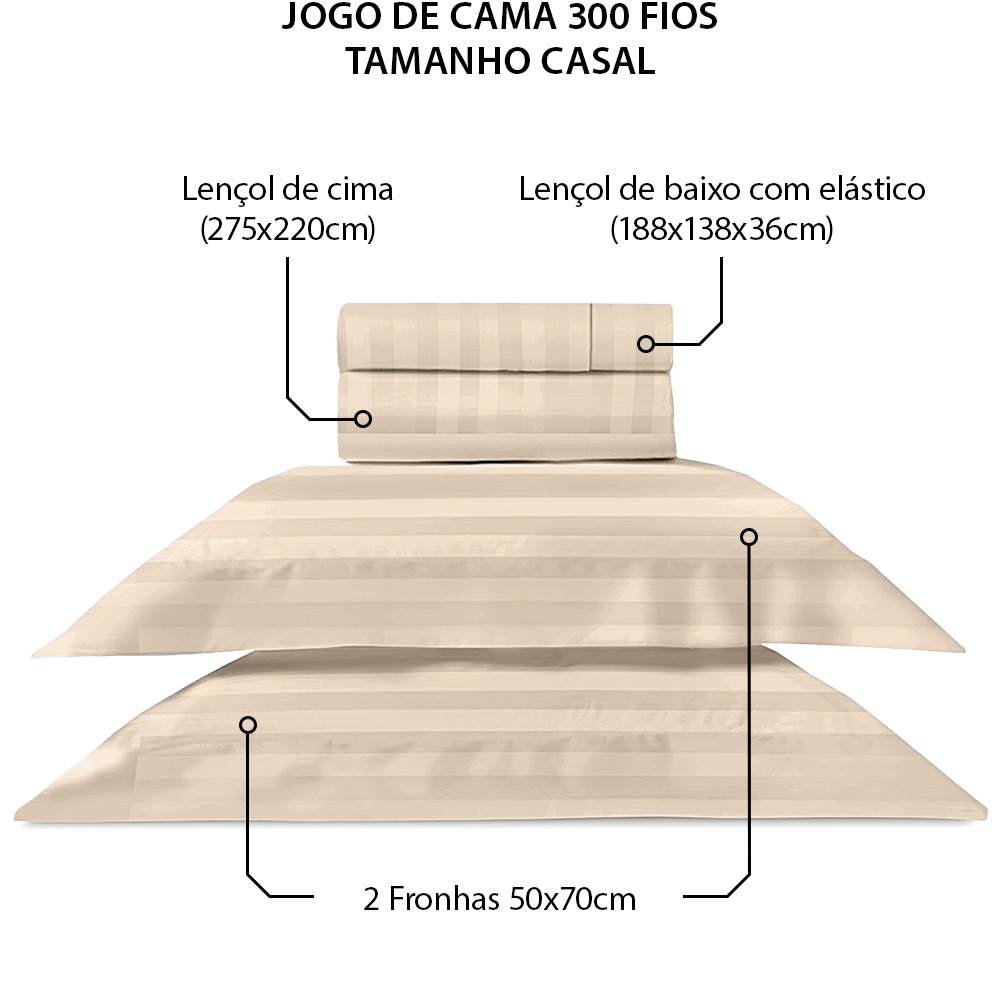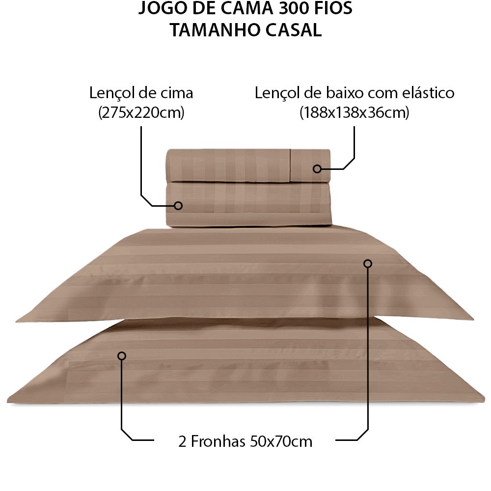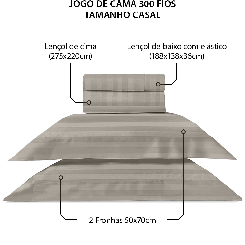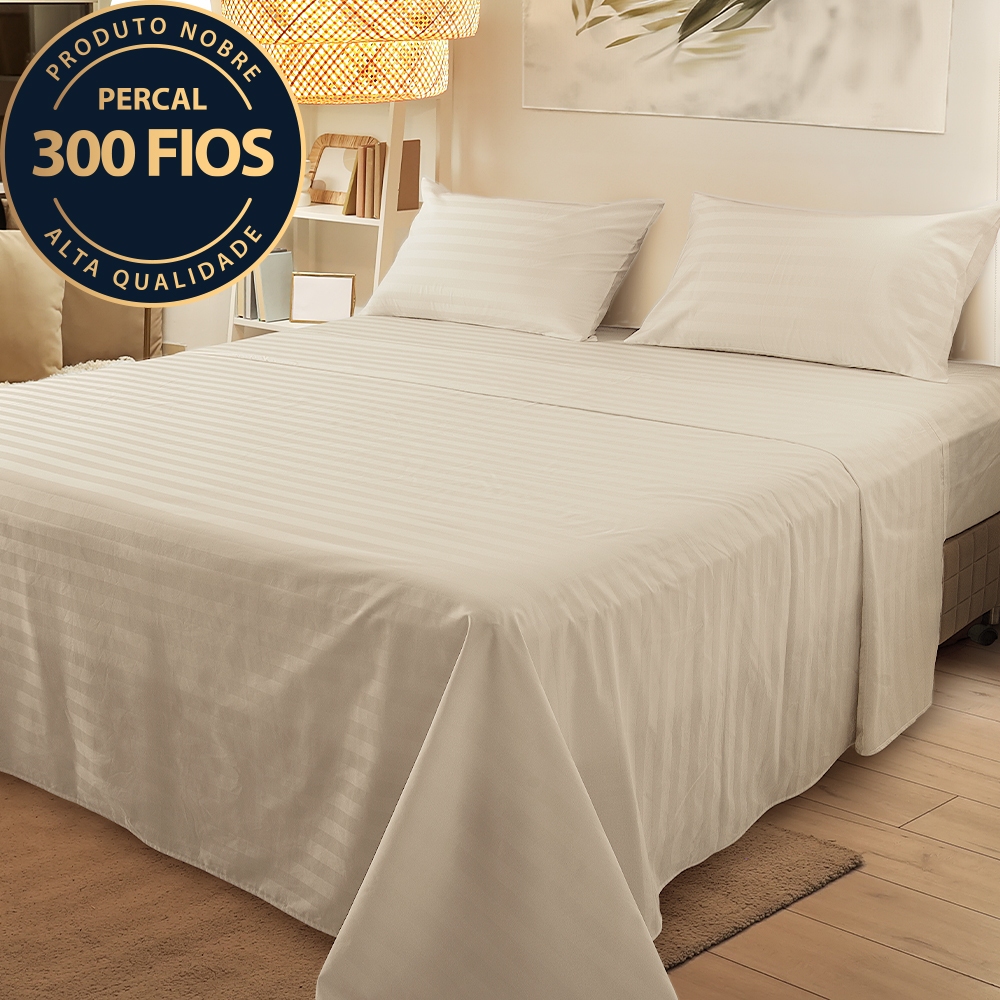 Jogo de Cama Casal 4 Peças 100% Algodão Premium Percal 300 Fios Adasmascado - BF Colchões