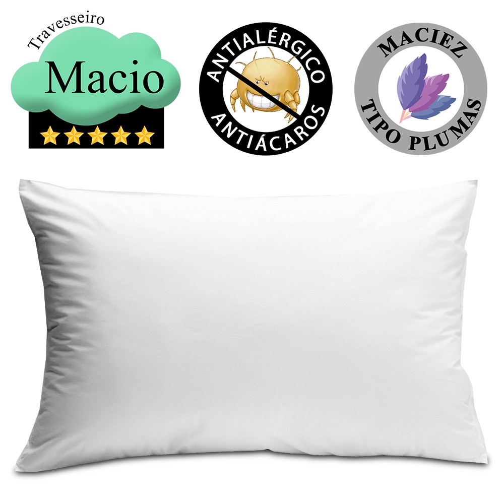 Kit 4 Travesseiro Antialérgico Percal 180 Fios Ecoplumas Fibra Siliconada 50x70x14cm - BF Colchões