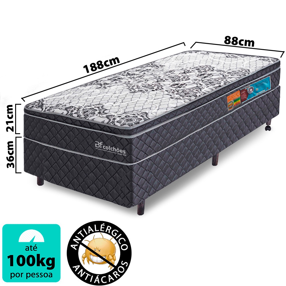 Cama Box Solteiro Colchão Molas Ensacadas com Pillow de Tecnologia Tridimensional Relax BF Colchões