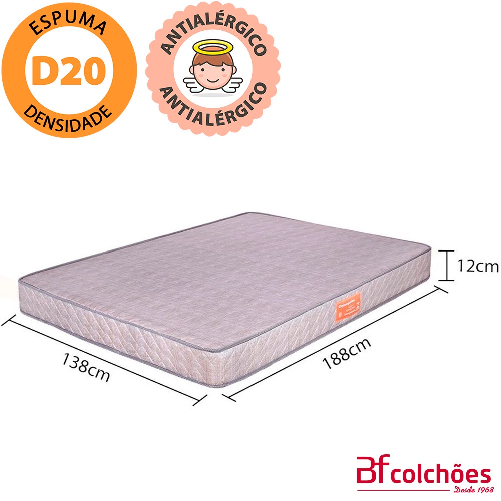 Colchão Infantil Casal Espuma D20 Selada Antialérgico 138x188x12cm - BF Colchões
