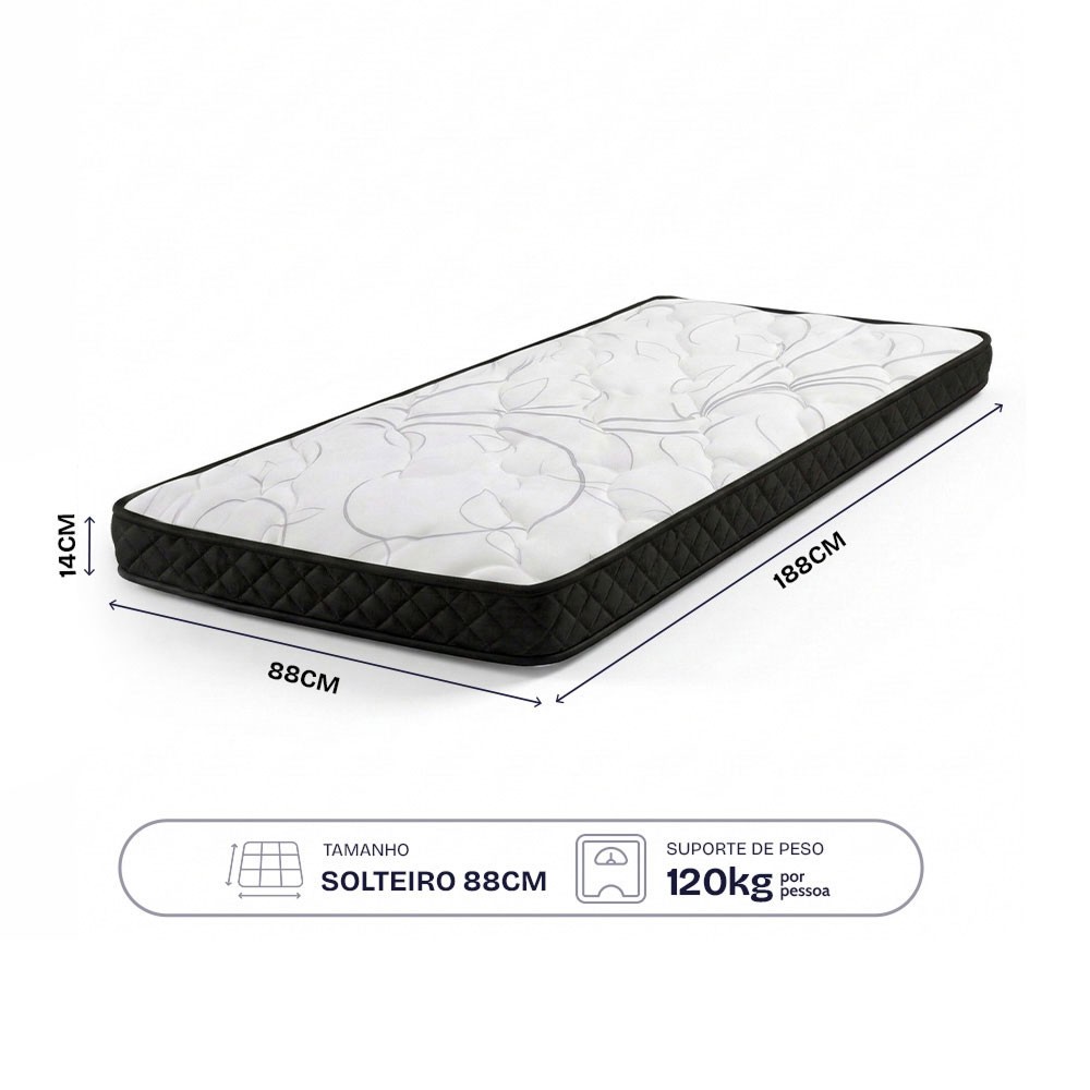 Colchão Solteiro Espuma D33 A Vácuo Ortopédica Certificada 88x188x14cm BF Colchões