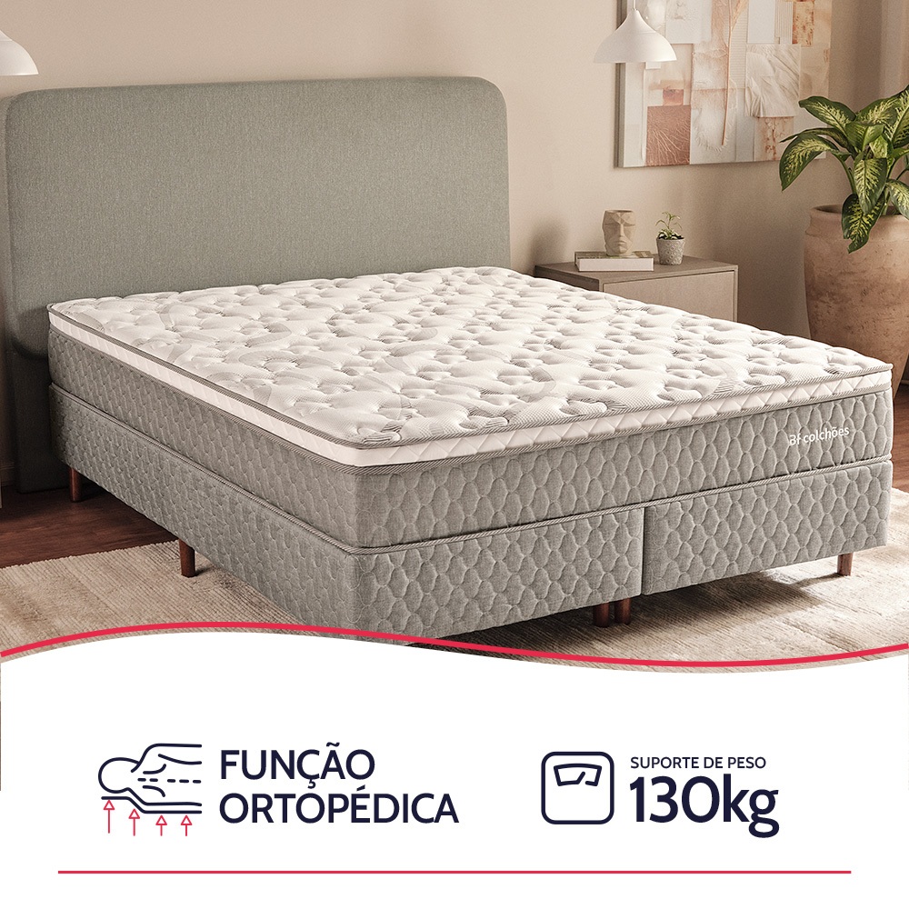 Cama Box Queen Colchão Smart Spring Mola Ensacada e Pillow Top de Espuma 158x198x61cm BF Colchões