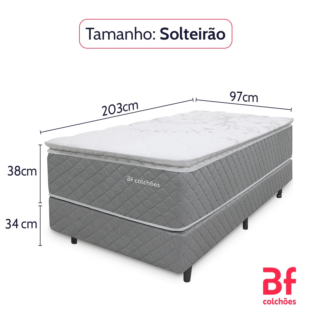 Cama Box Solteirão Colchão Molas Ensacadas com Pillow Top Extra Conforto 97x203x72cm - BF Colchões