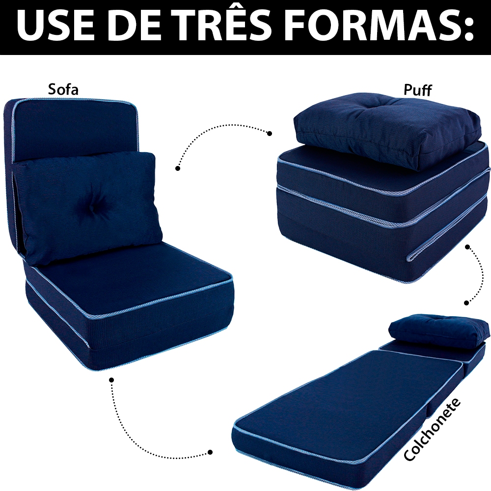 Puff Colchonete Dobrável / Sofá 3 em 1 Espuma D33 + Travesseiro Solteiro BF Colchões