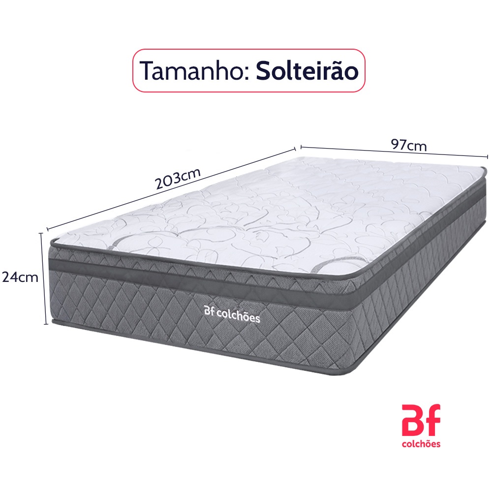 Colchão Solteirão Espuma D45 Extra Firme Ortopédico Antialérgico Certificado 97x203x24cm BF Colchões