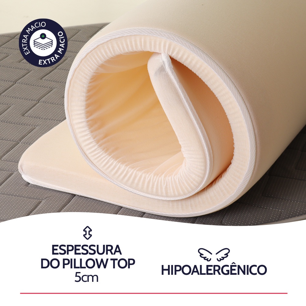 Pillow Top Solteirão Espuma Hiper Soft Hipoalergênico 97x203cm BF Colchões