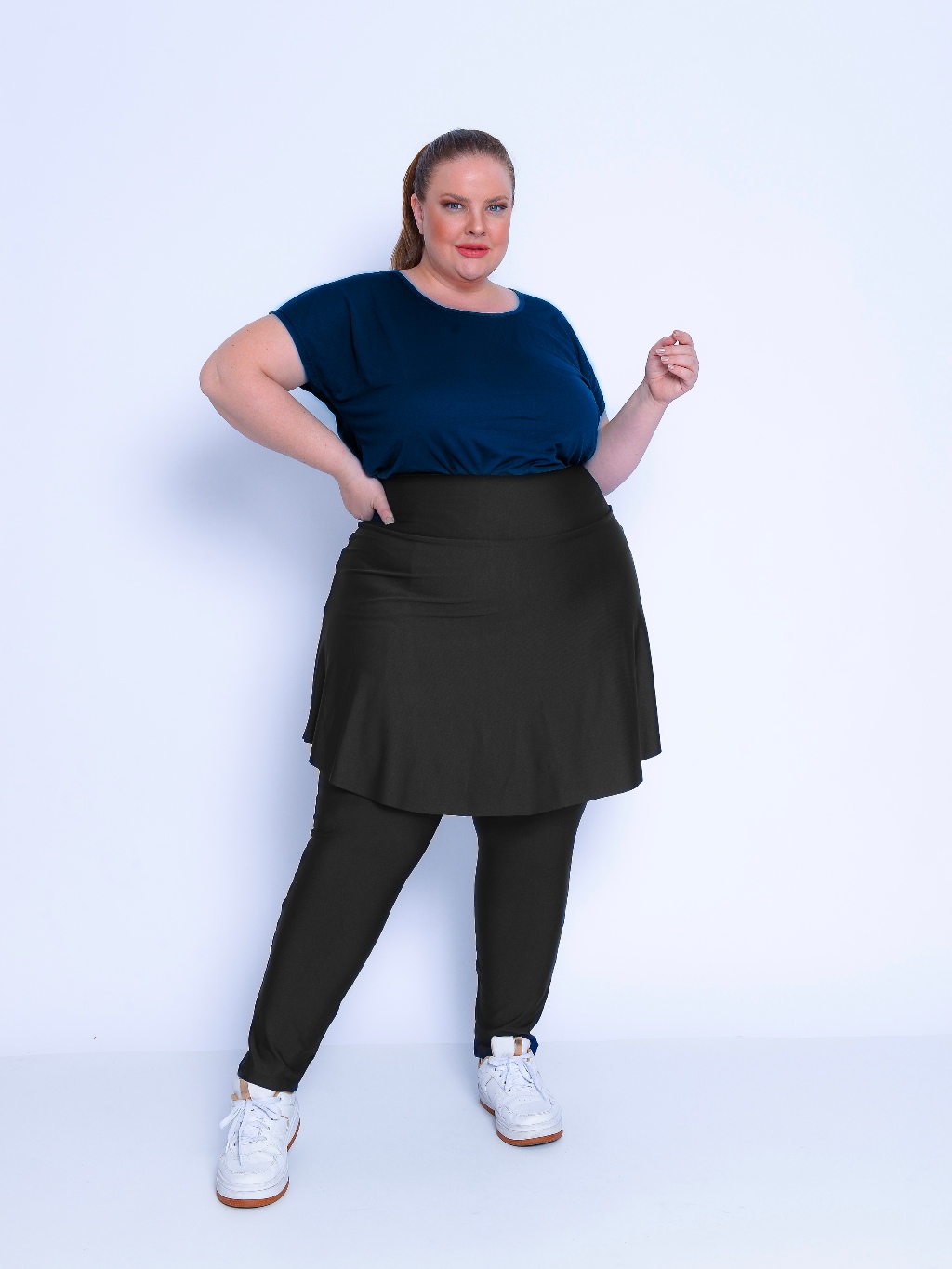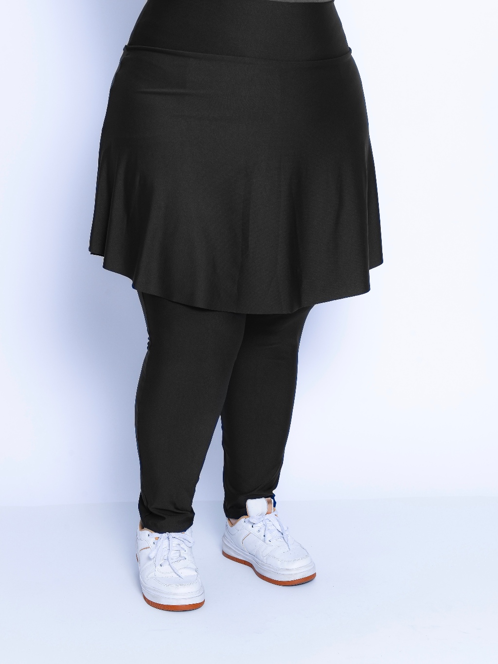 Calça Saia Com Bolso Preta Moda Plus Size Fitness Em Suplex