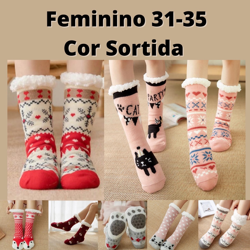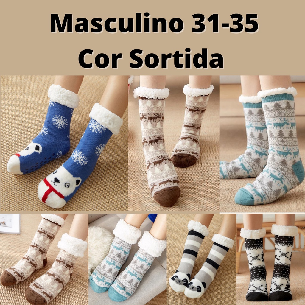 Meia Pantufa Infantil Juvenil Térmica Antiderrapante Forrada de Lã Quentinha Inverno Conforto